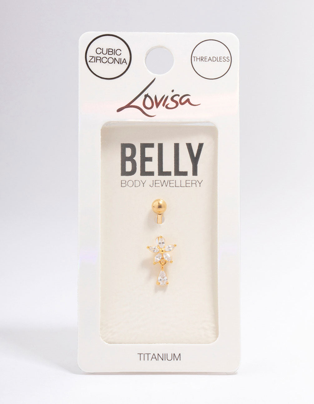 Gold Plated Titanium Cubic Zirconia Flower Pear Belly Piercing Gold Plated Titanium Cubic Zirconia Flower Pear Belly Piercing Gold Plated Titanium Cubic Zirconia Flower Pear Belly Piercing