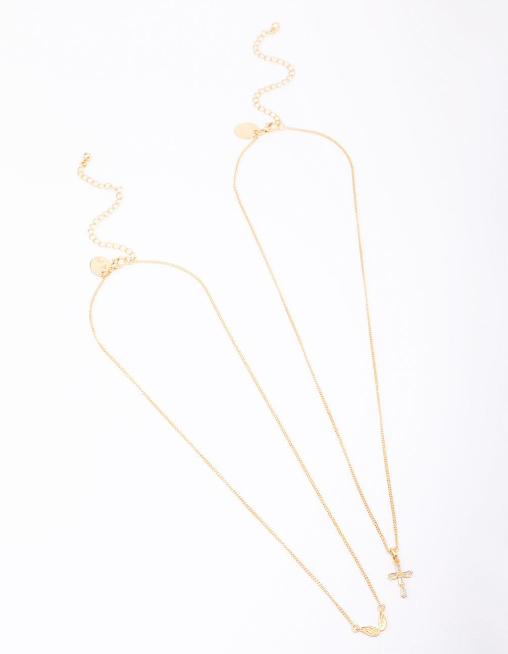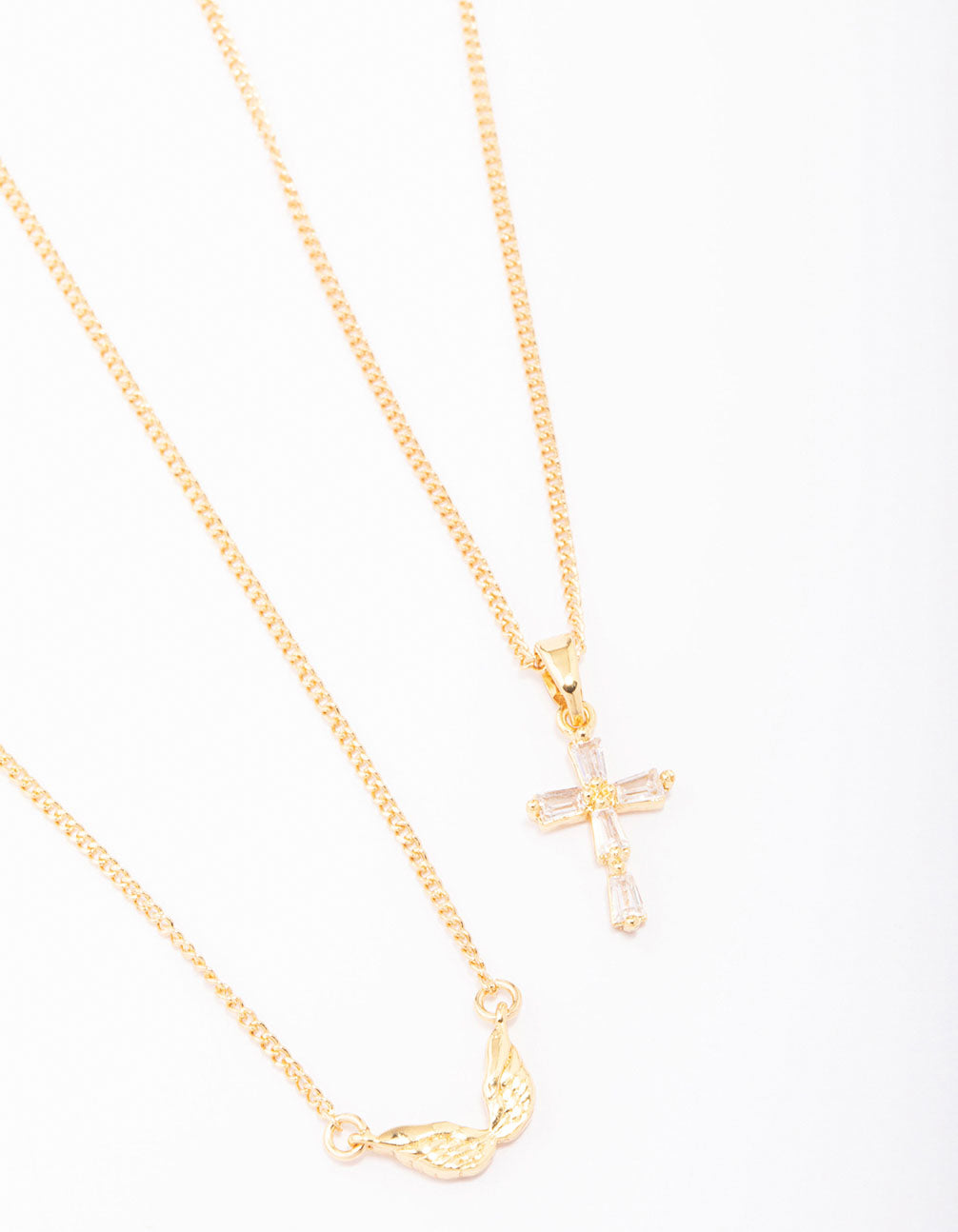 Gold Plated Wings & Diamante Cross Necklace 2-Pack