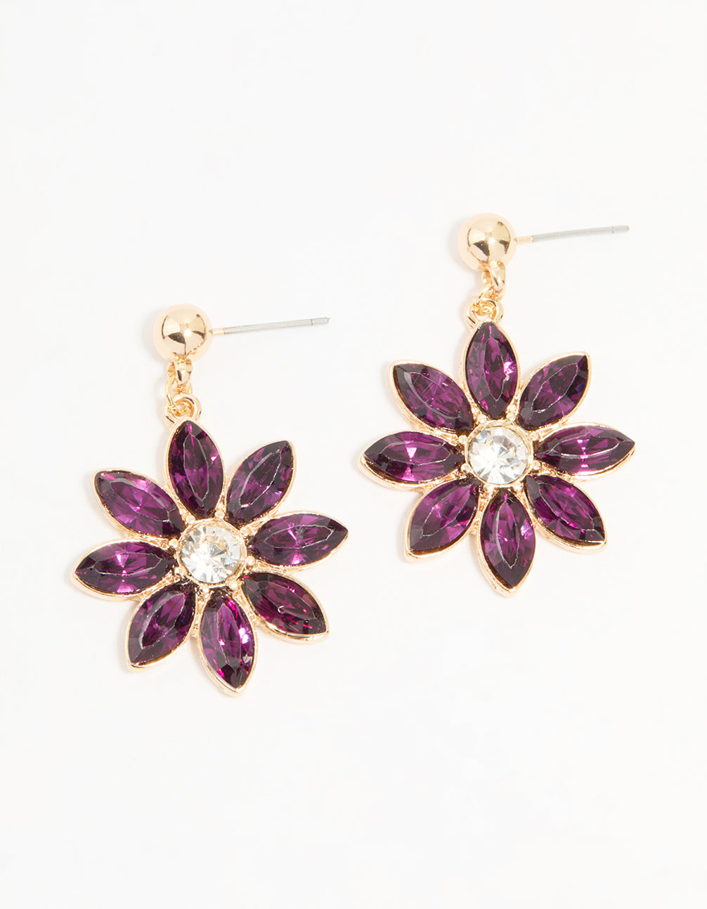 • Gold Purple Diamante Flower Drop Earrings - link has visual effect only