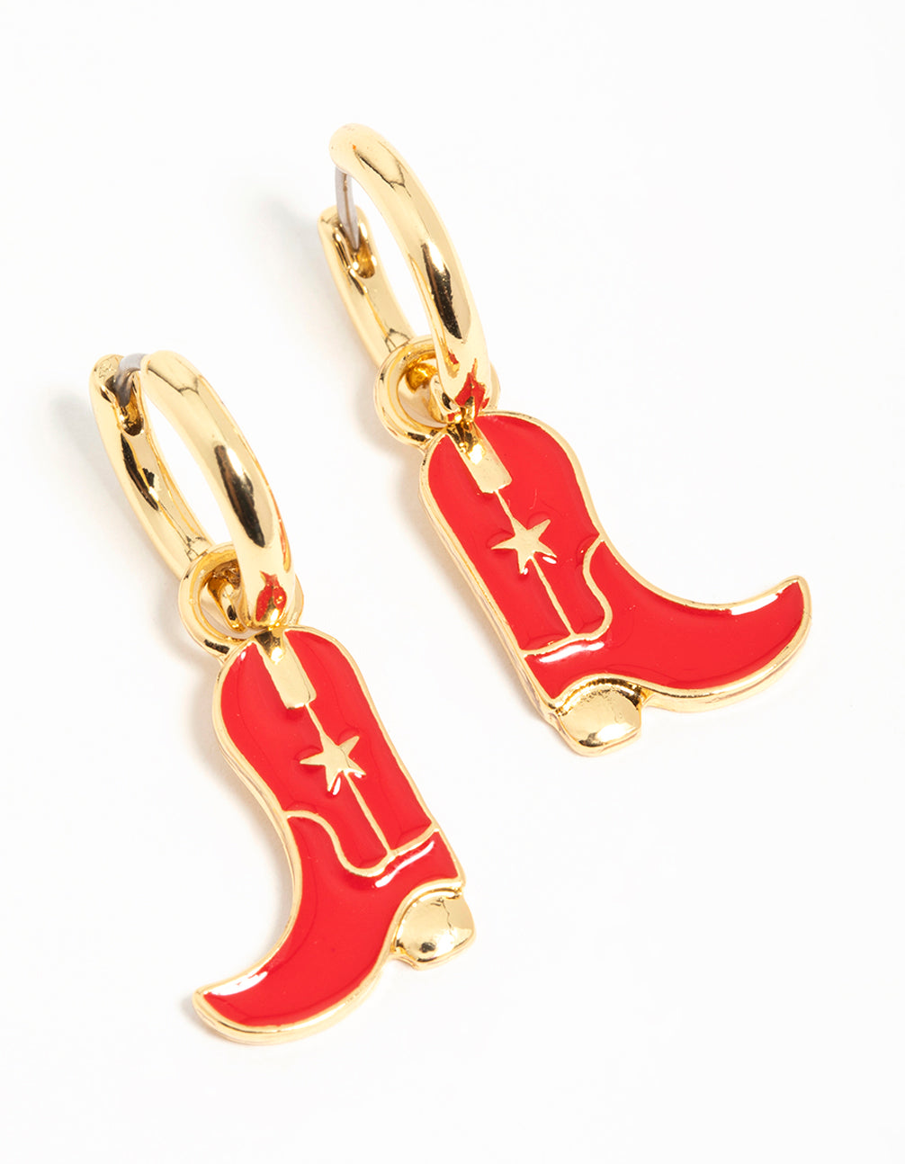 • Gold Red Enamel Cowboy Boot Drop Earrings - link has visual effect only