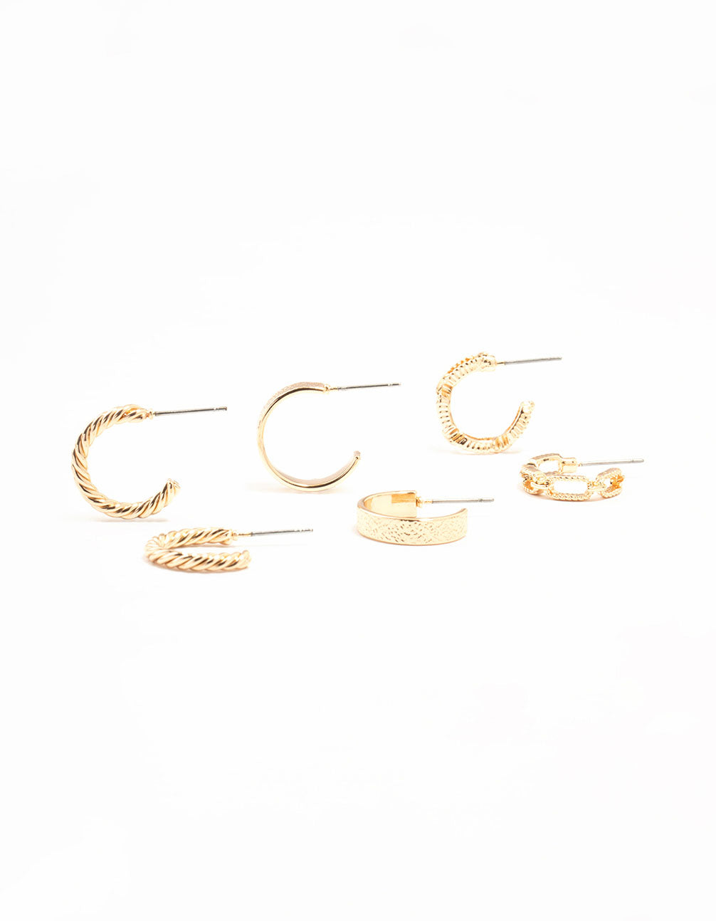 Gold Sand Blast & Link Hoop Earrings 3-Pack