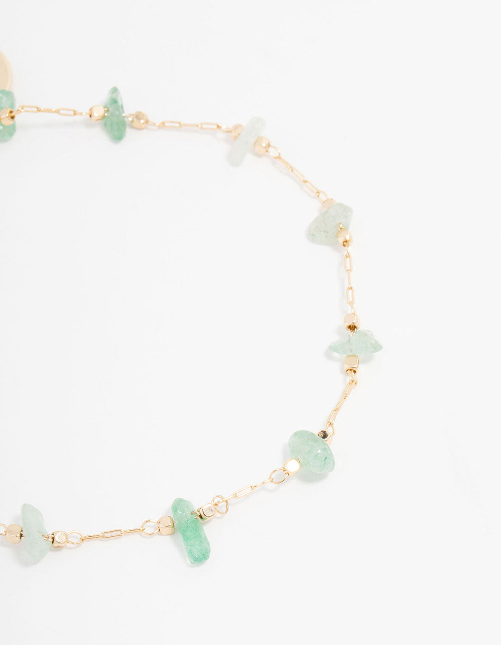 Semiprecious stones are a brilliant way to add something to your stack. This gold plated bracelet features pretty Jade semi precious stones which is all about the heart chakra and fostering good luck. Wear alone or add to your bracelet stack.
