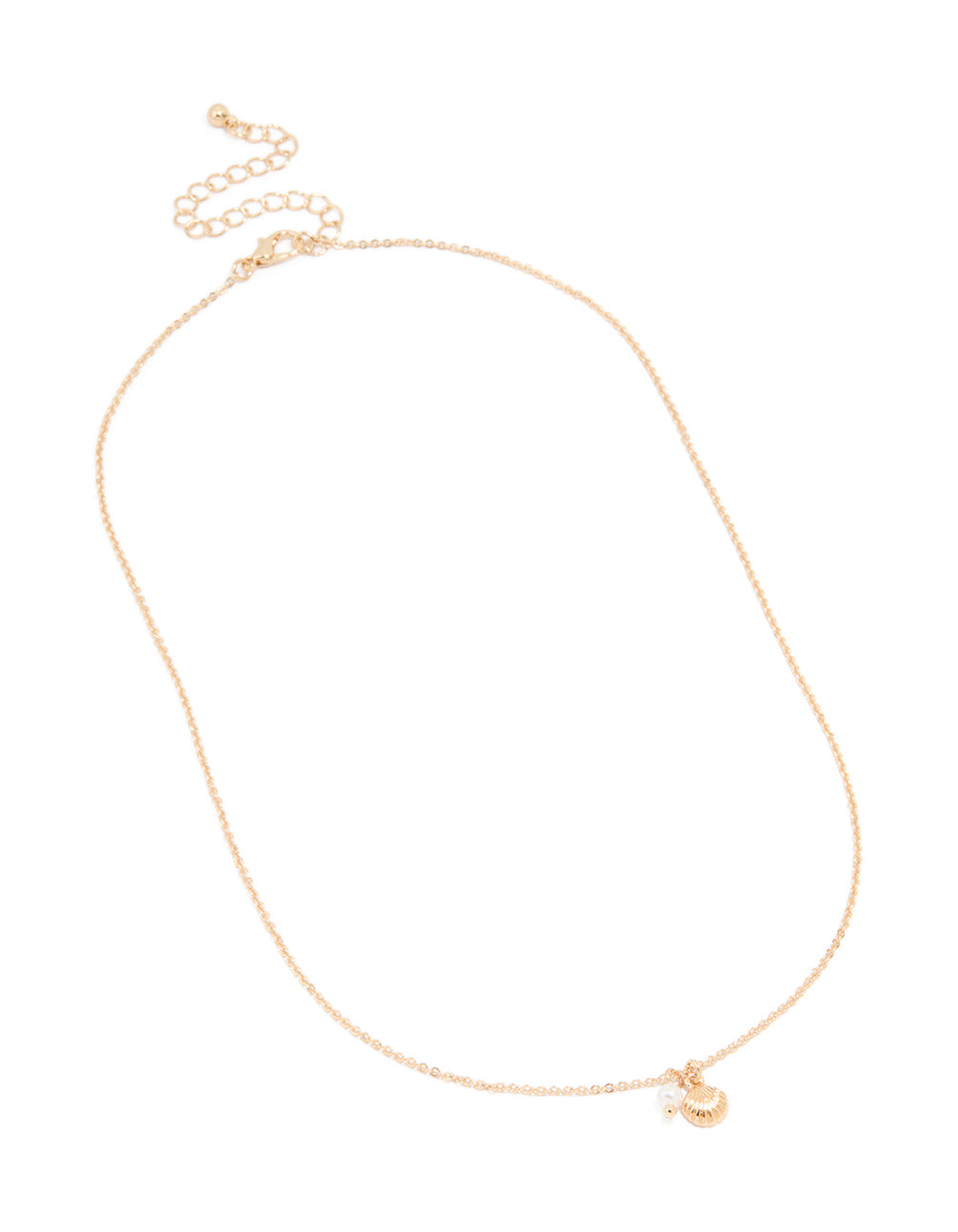 Gold Shell & Pearl Pendant Necklace Gold Shell & Pearl Pendant Necklace