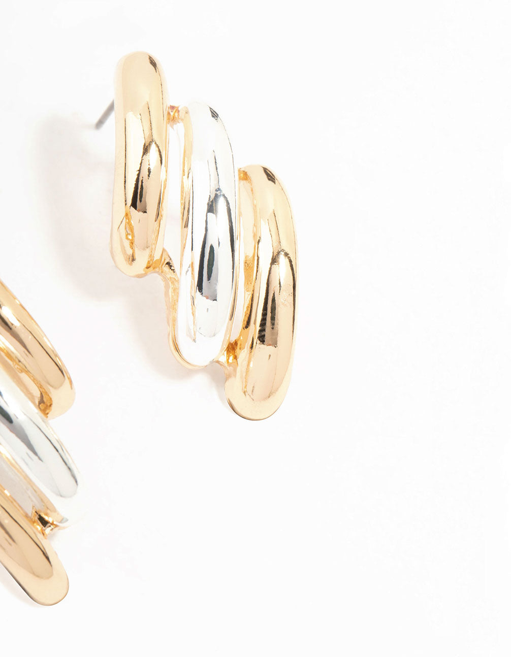 Upgrade your style with these beautiful gold and silver layered stud earrings. Their modern dual-toned design enhances any outfit, making them a versatile accessory for an effortlessly chic look.