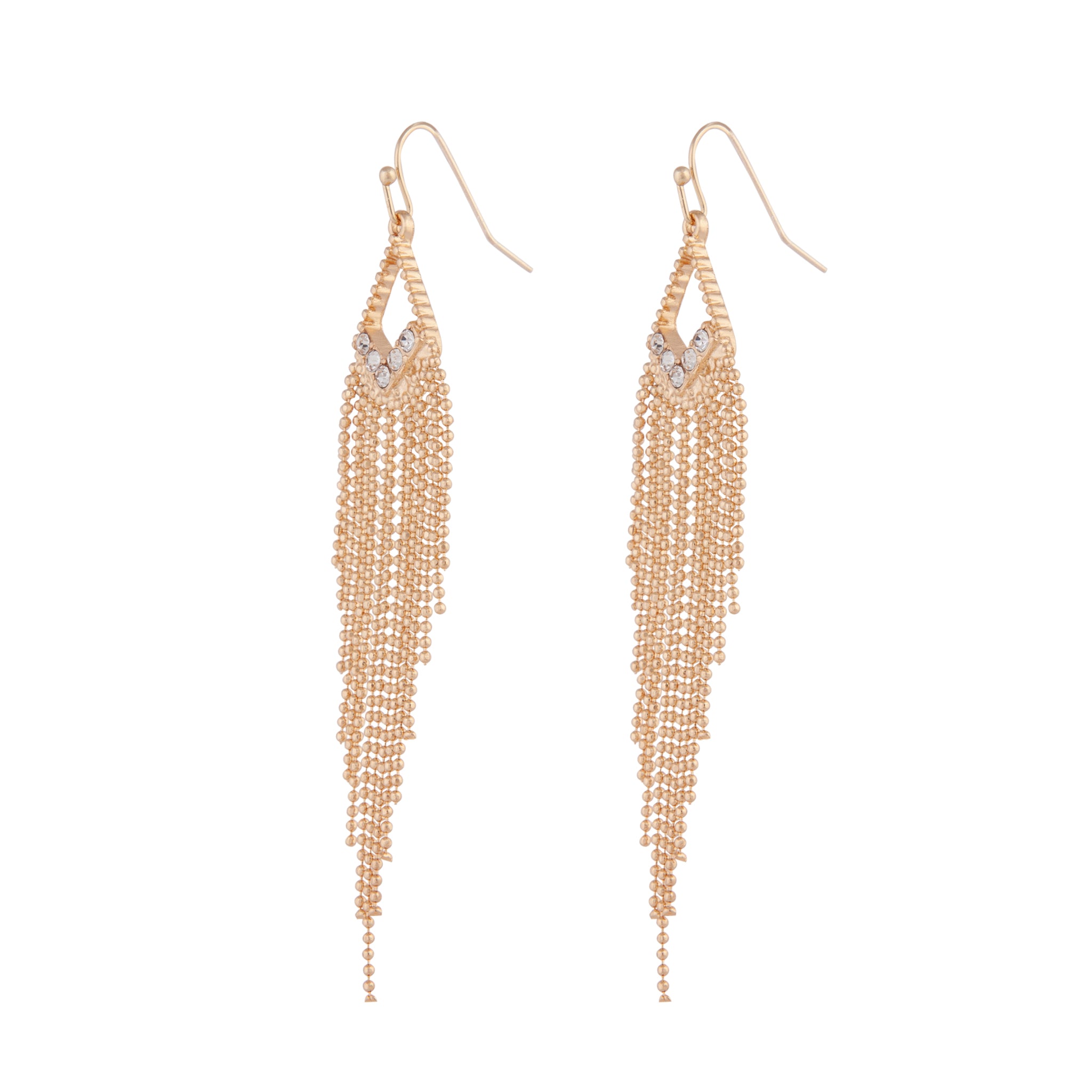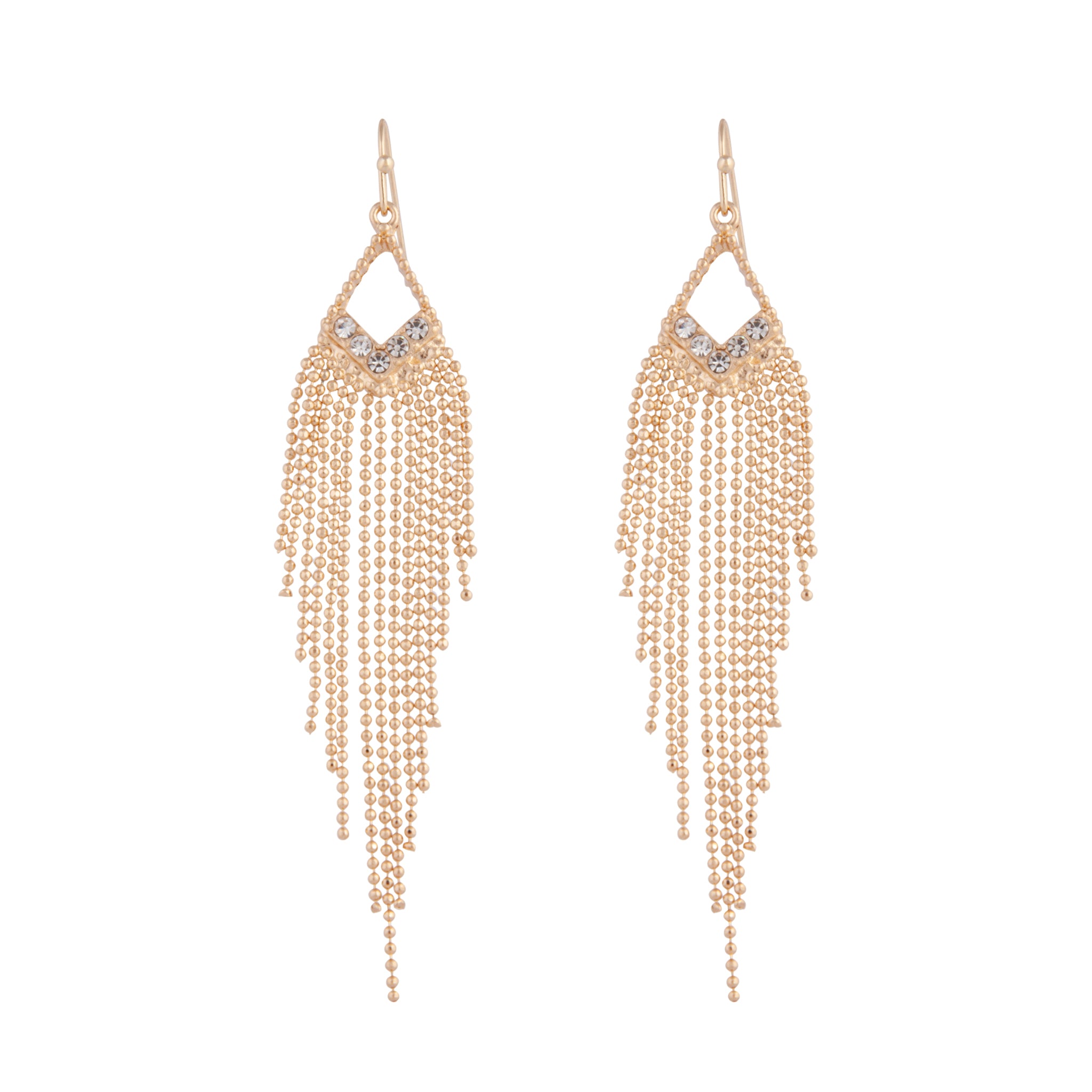 A pair of gold-toned cascading drop earrings with a diamante feature.