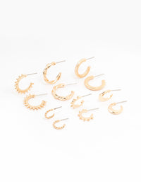 Gold Spike Huggie Earrings 6-Pack