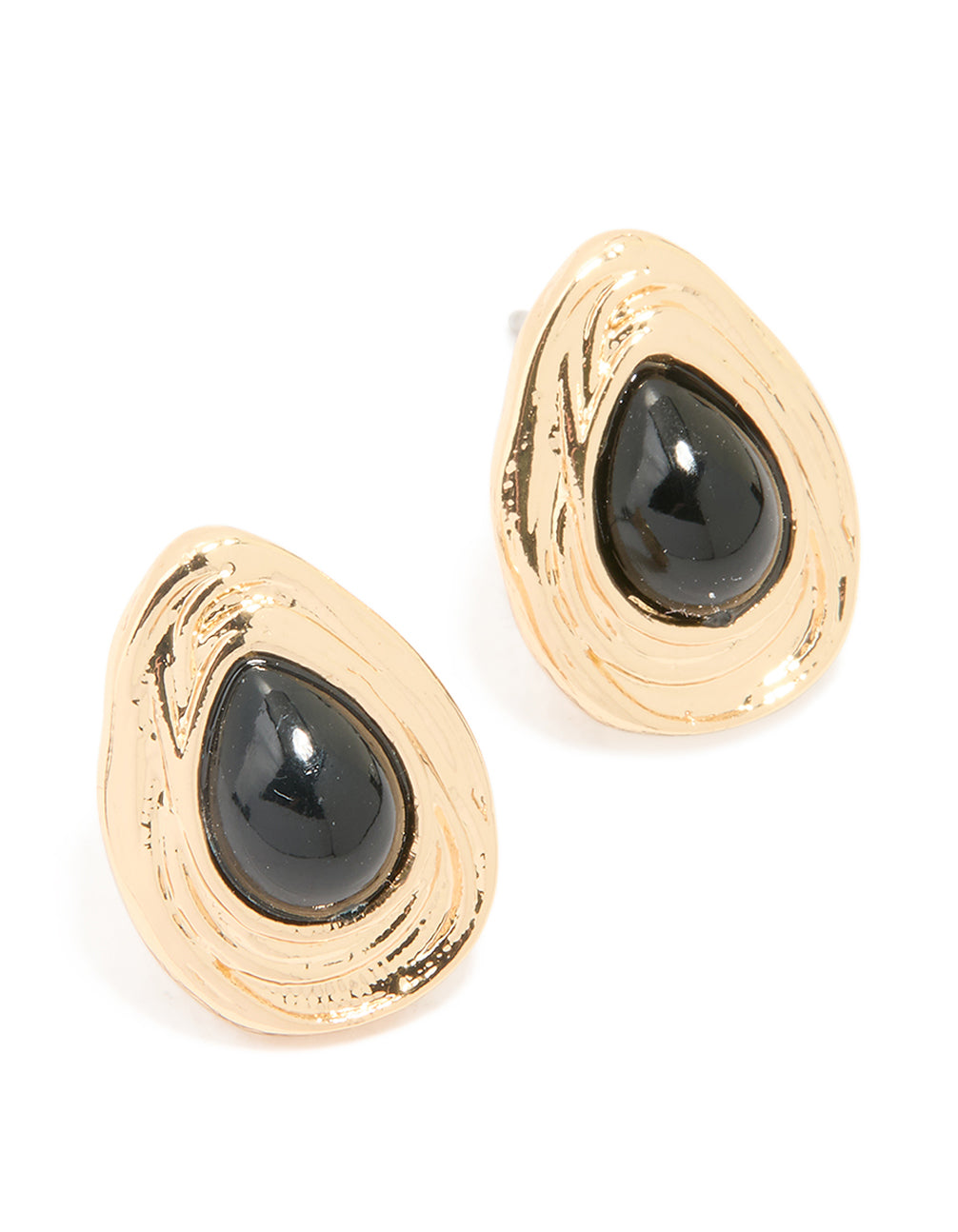 Gold Textured Pear Stud Earrings