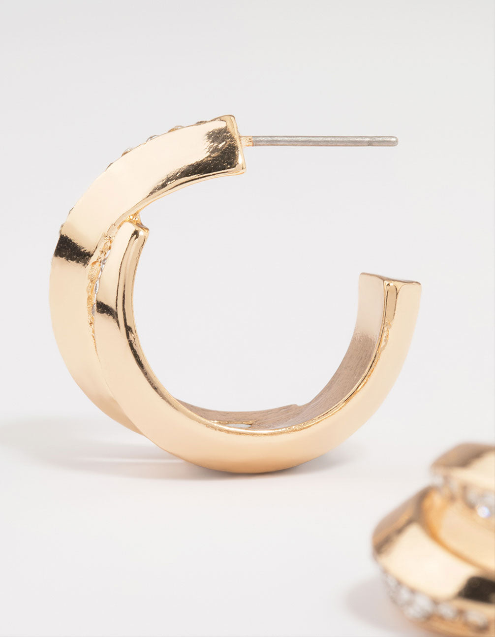 Gold Thick Diamante Double Hoop Earrings