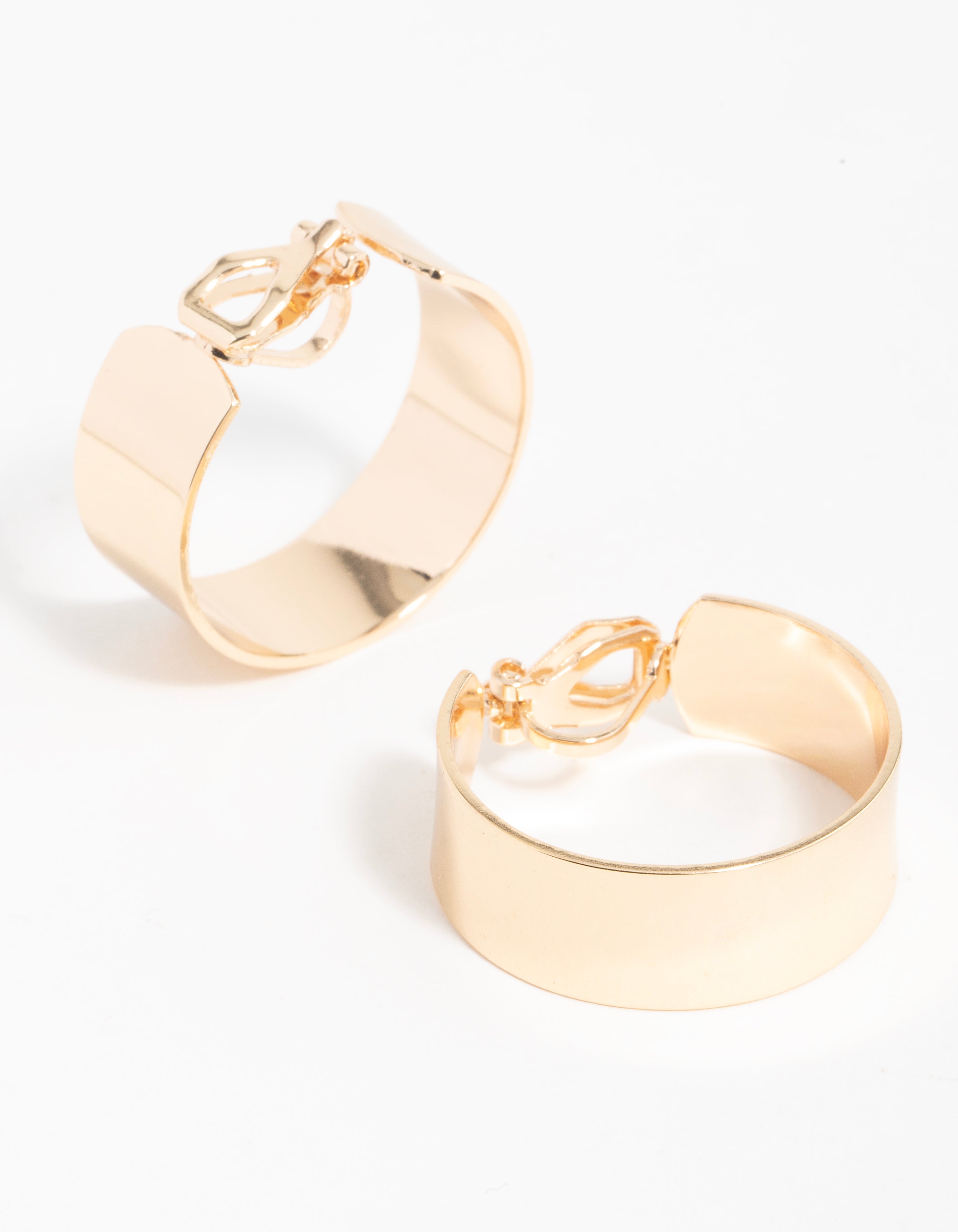 Add a sleek touch with these gold-toned hoops! Their thick, flat design brings classic sophistication to any look.
