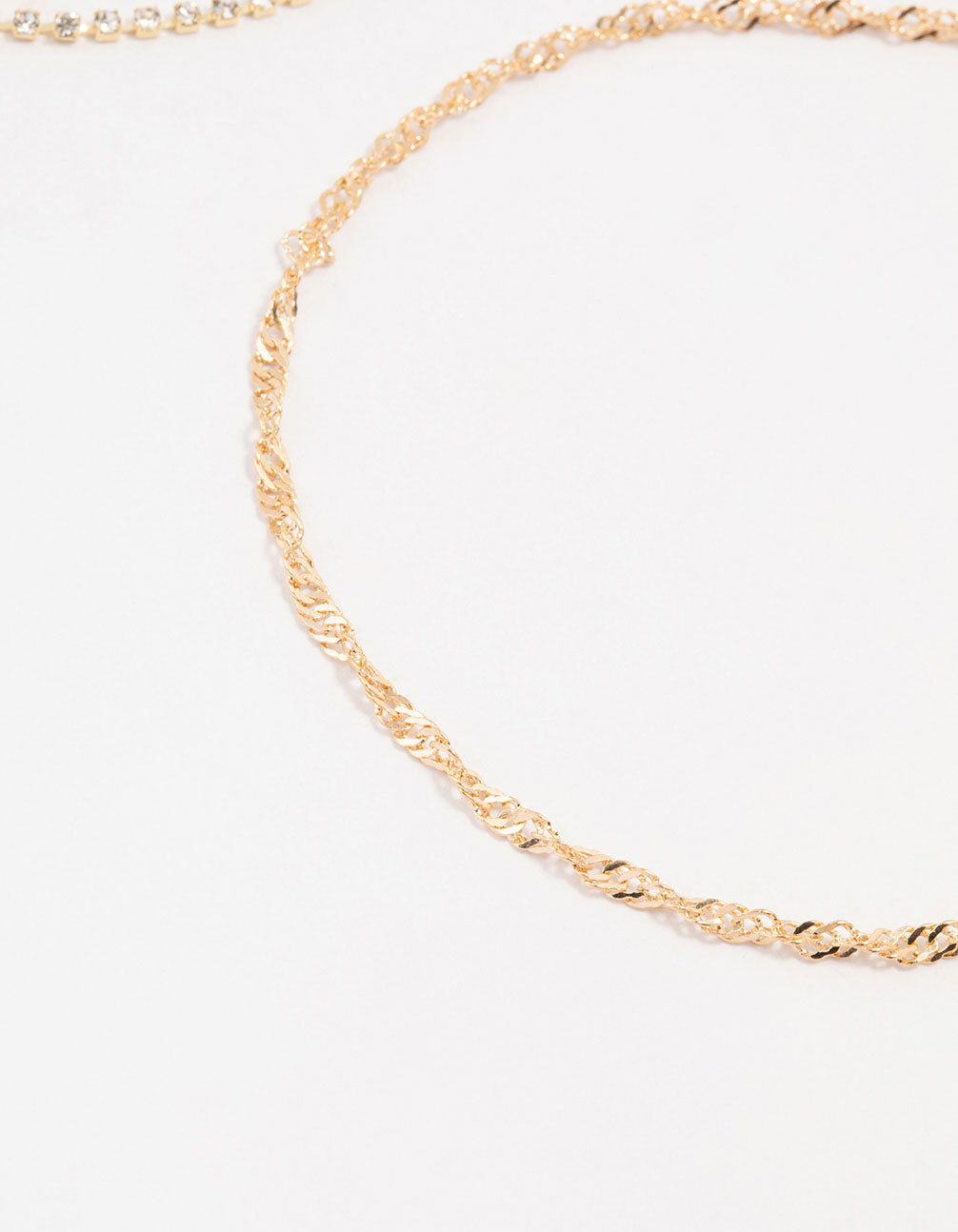 Slip into a trio of gold anklets that add a touch of dazzle to any look. The twisted cupchain design creates a captivating, high-shine effect. Mix and match these versatile anklets to elevate your summer style, from the beach to the city streets.