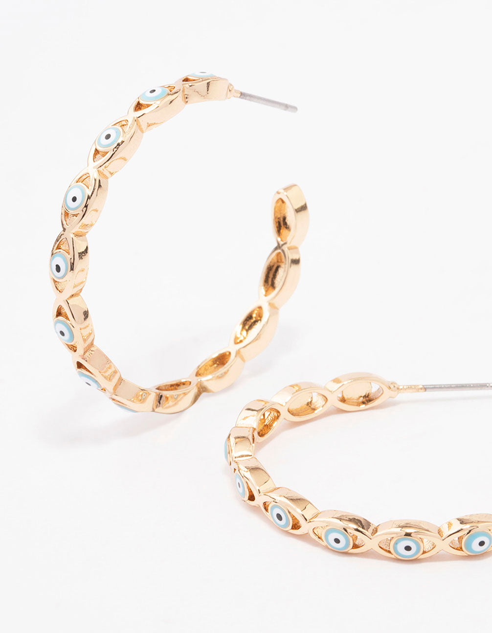Style these Gold Twisted Eye Hoop Earrings with a set of simple studs for a layered look.