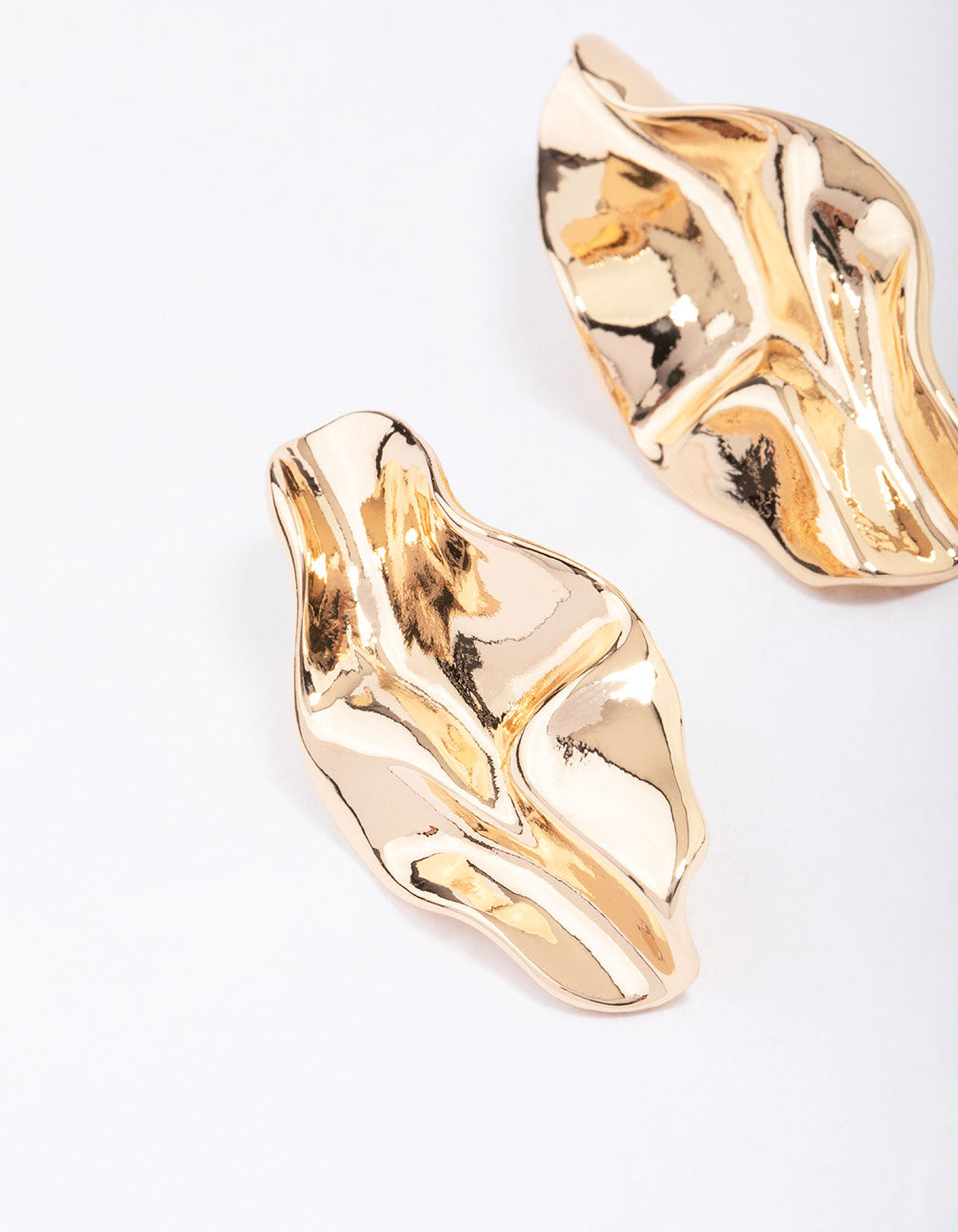 For a modern addition to your stack, style these gold-toned statement studs. These unique stud earrings feature an organic-shaped, oval design and molten texture. Perfect for adding dimension to your stack!