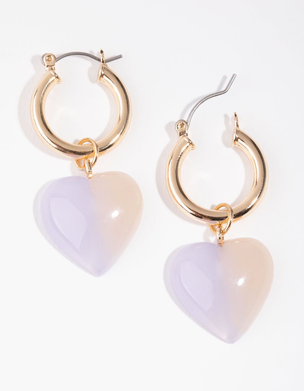 These drop earrings will add a stylish edge to any look! Featuring a striking iridescent heart attachment on a gold-toned setting, these earrings can be paired with any outfit for an ultra-modern ensemble.