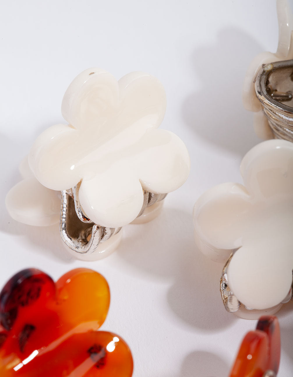 This six pack of hair claw clips comes with three white and three tortoiseshell clips in a flower design. They measure 2.5cm in length.
