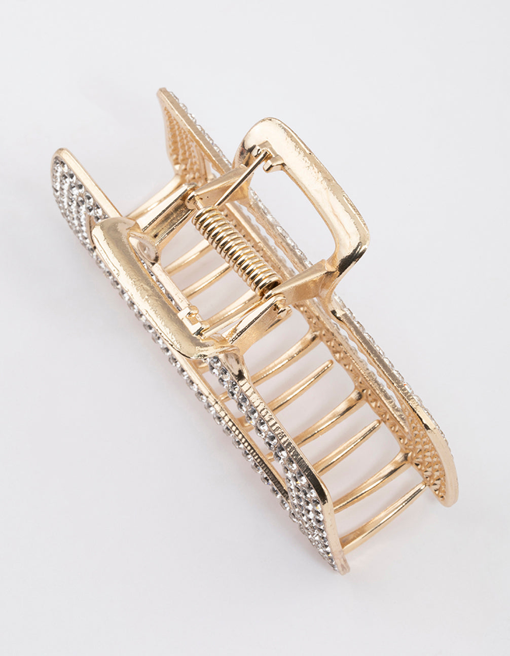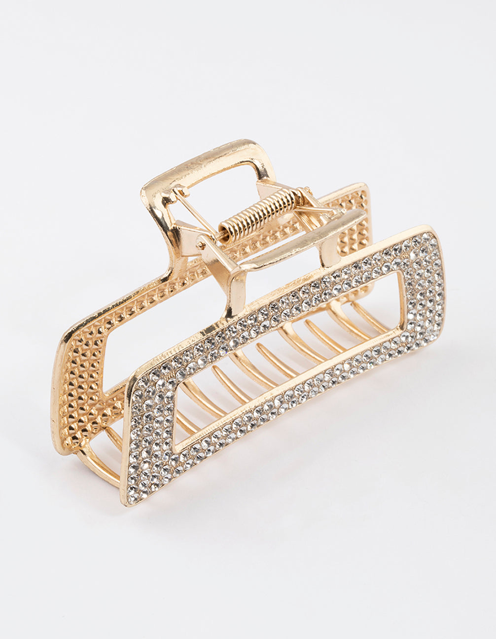 - Pair this Gold Dazzling Rectangle Hair Claw Clip with a simple pair of gold huggie hoops for a cohesive look.