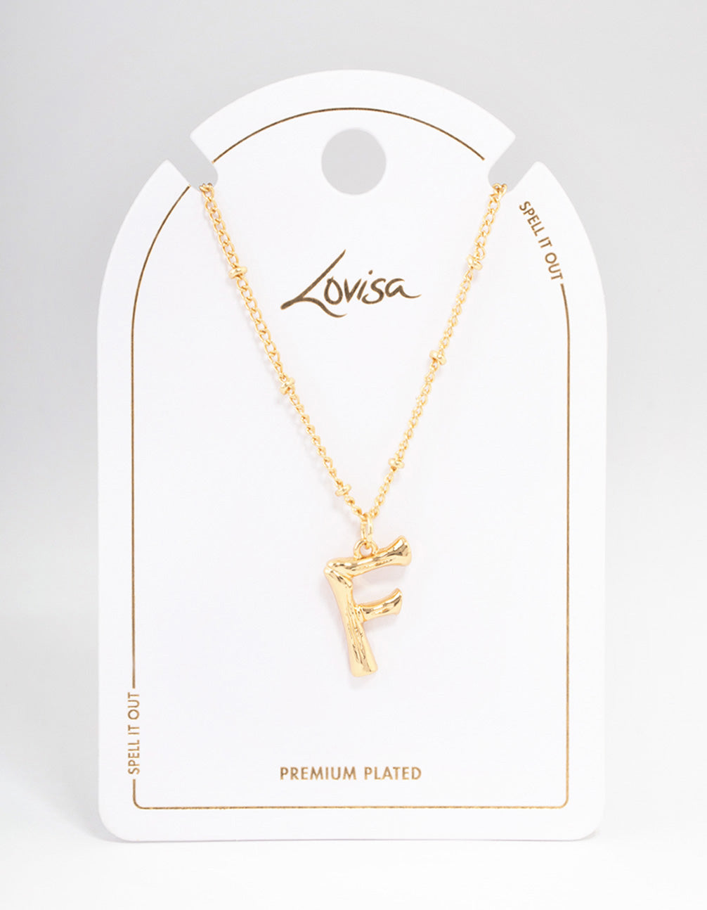 Letter 'F' Gold Plated Bamboo Initial Necklace Letter 'F' Gold Plated Bamboo Initial Necklace Letter 'F' Gold Plated Bamboo Initial Necklace