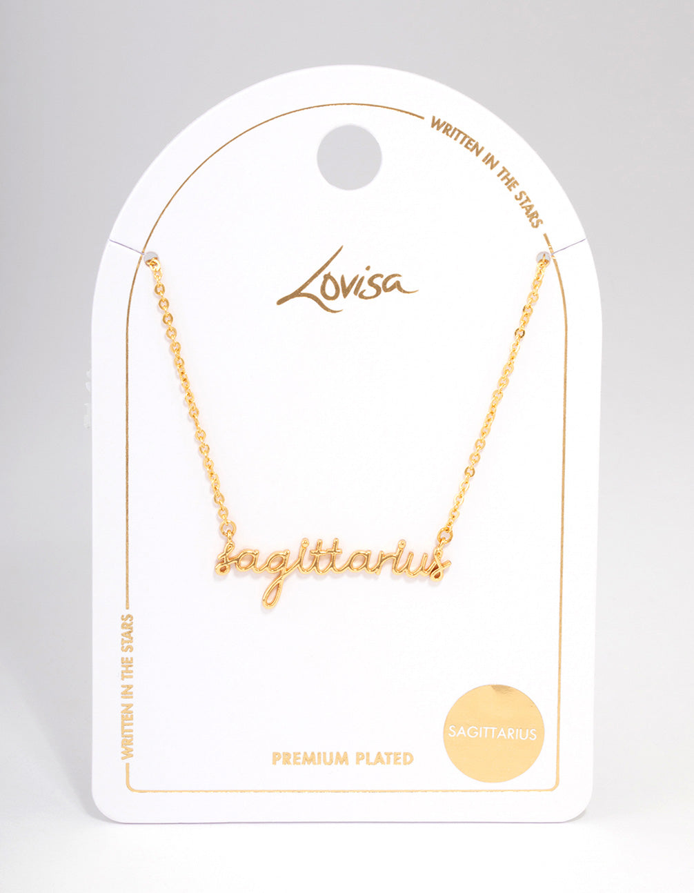 Gold Plated Sagittarius Script Pendant Necklace Gold Plated Sagittarius Script Pendant Necklace Gold Plated Sagittarius Script Pendant Necklace