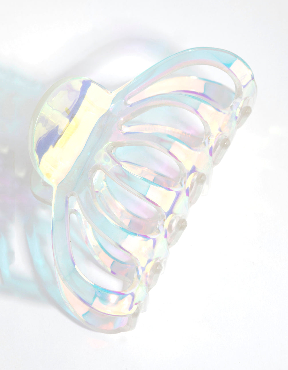 Claws out! The claw trend is here to stay. This funky hair claw boasts an iridescent finish. Wear it and unleash your inner mermaid!