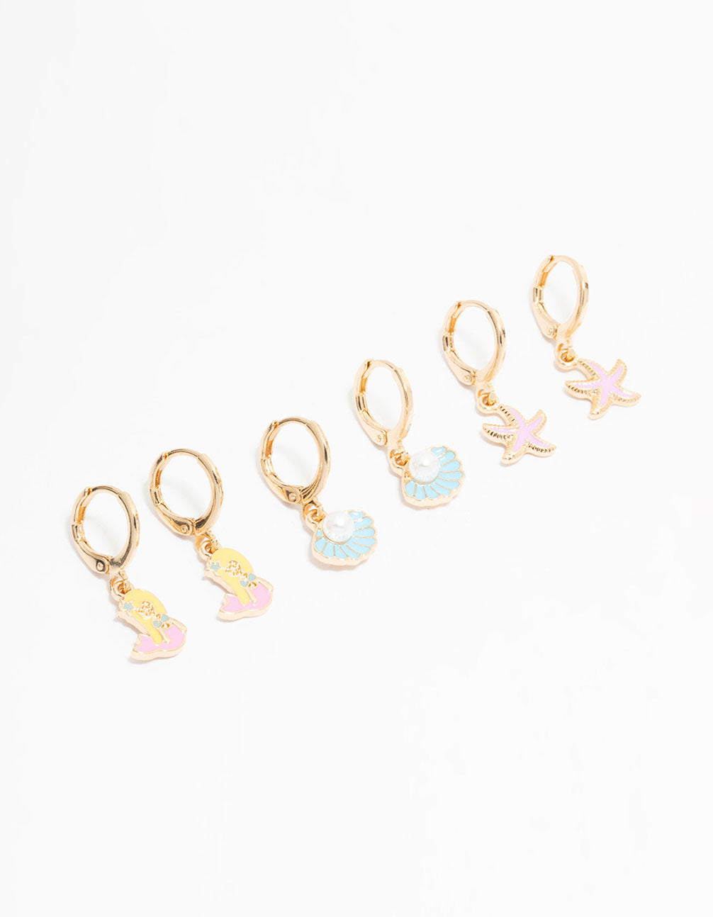 Kids Gold Pastel Mermaid & Shell Huggie Earrings 3-Pack