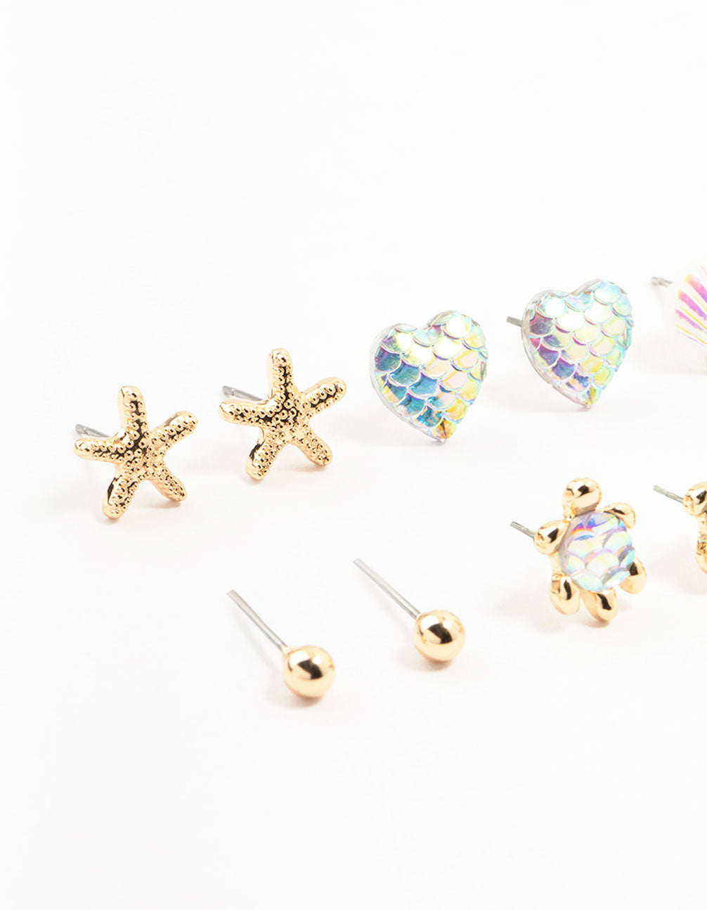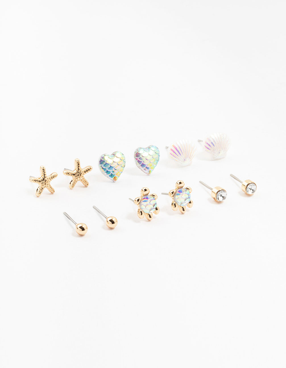 Kids Gold Sea Theme Stud Earrings 6-Pack