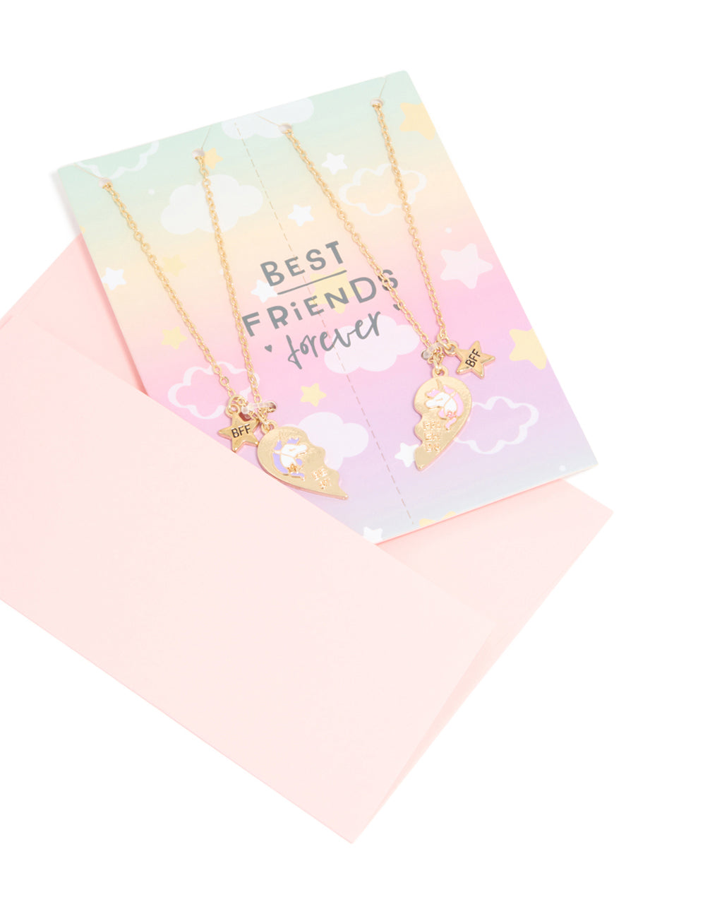 Kids Gold Unicorn BFF Heart Necklace Pack