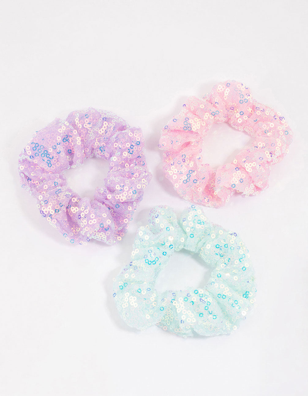 Kids Mixed Sequined Pastel Hair Scrunchies Pack Kids Mixed Sequined Pastel Hair Scrunchies Pack