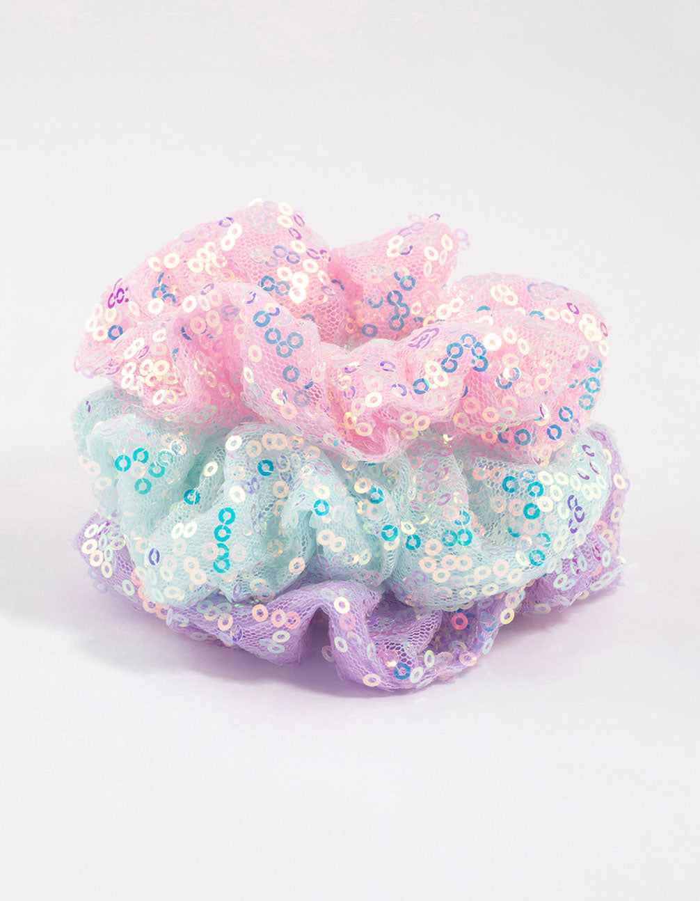 • This accessory pack contains three individual hair scrunchies, featuring mixed sequins and pastel colours for a pop of colour.