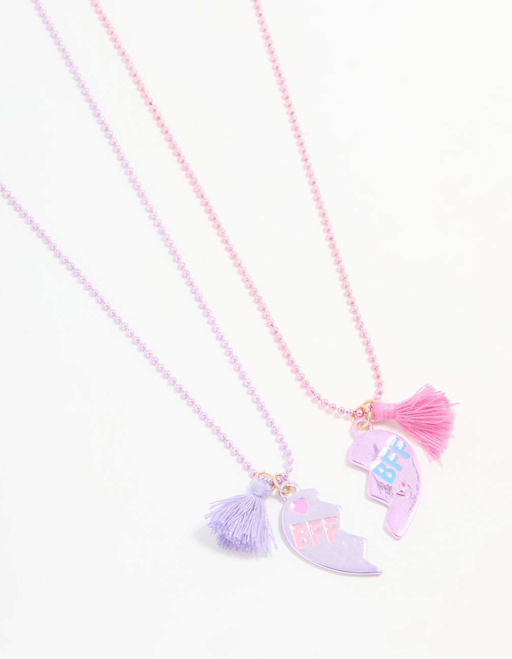 Kids Multicoloured Coted Metal Tassel Broken Heart BFF Necklace Set