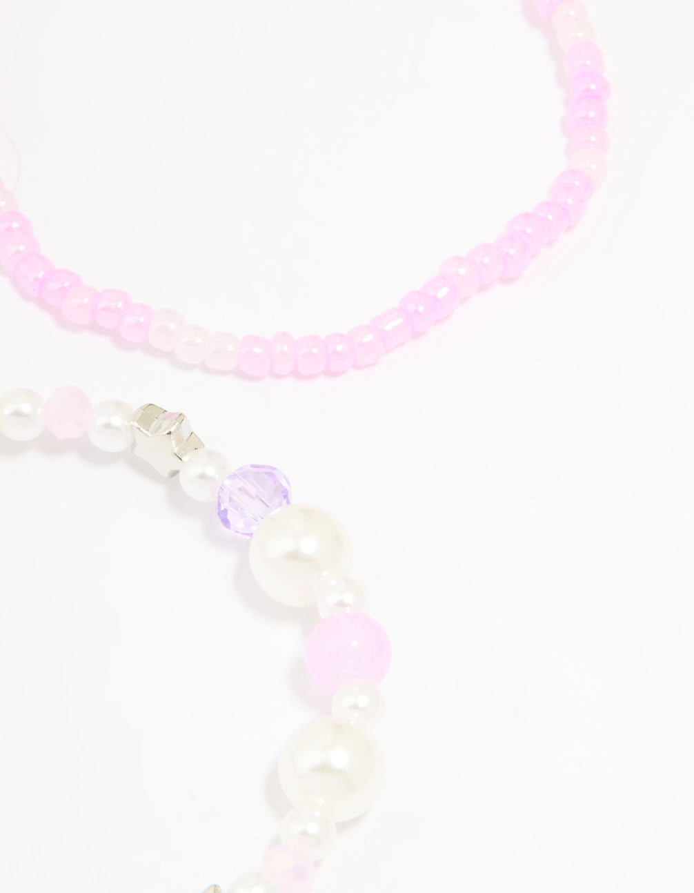 Kids Pink & White Beaded Stretch Bracelets Pack