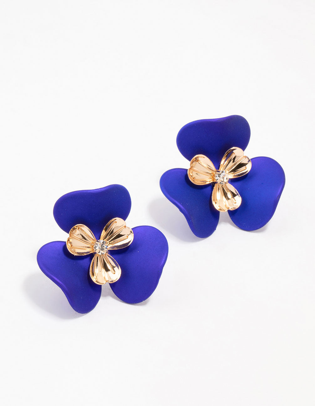 Brighten up your look with these vibrant flower studs! Featuring blue acrylic petals and a golden center, they're like a garden party for your ears. Perfect for adding a pop of floral glam and a splash of fun to any outfit.