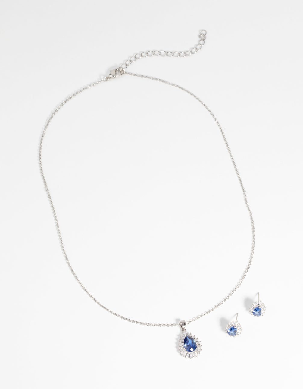 Sapphire Diamond Simulant Necklace & Earrings Set