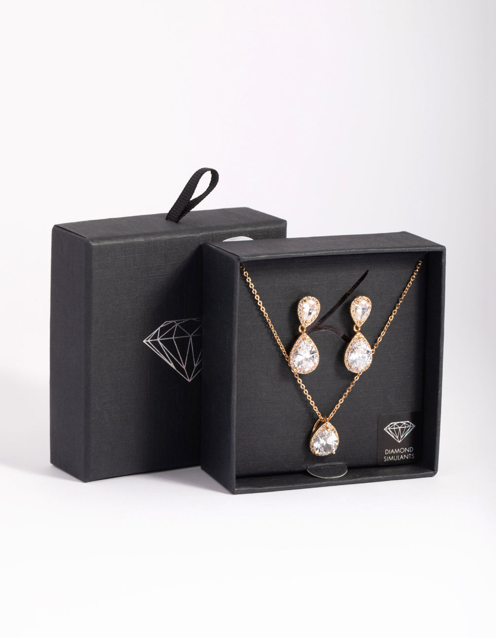 Gold Diamond Simulant Necklace & Earrings Set