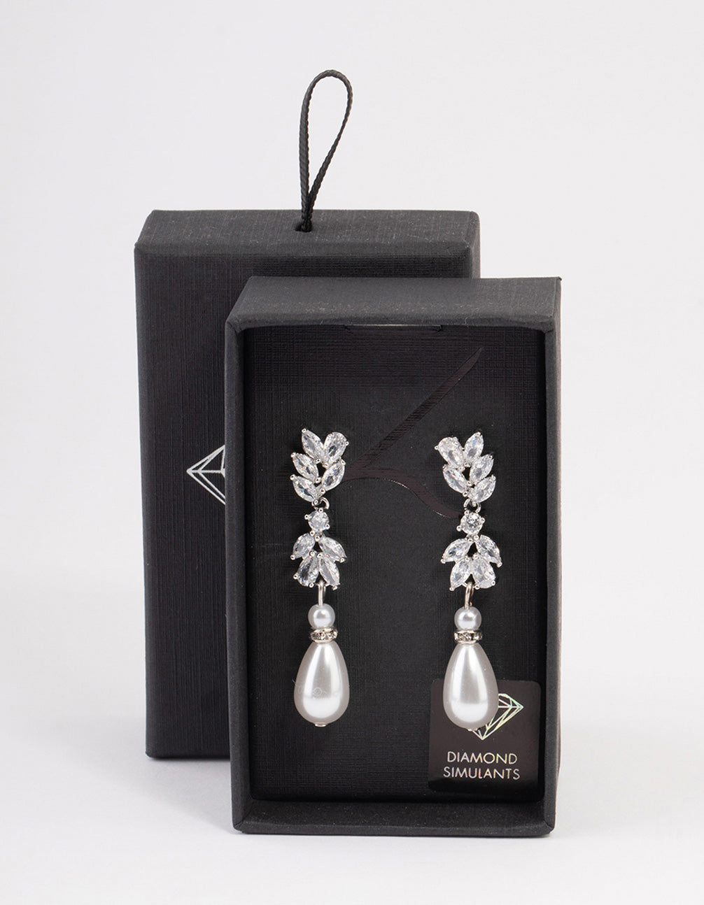 Crafted with precision and attention to detail, our diamond simulant pieces are expertly cut and polished to create a brilliant sparkle and shine, just like real diamonds. Style our silver-toned, petal-drop pearl earrings with a set of pearl studs for a luxe, layered finish.