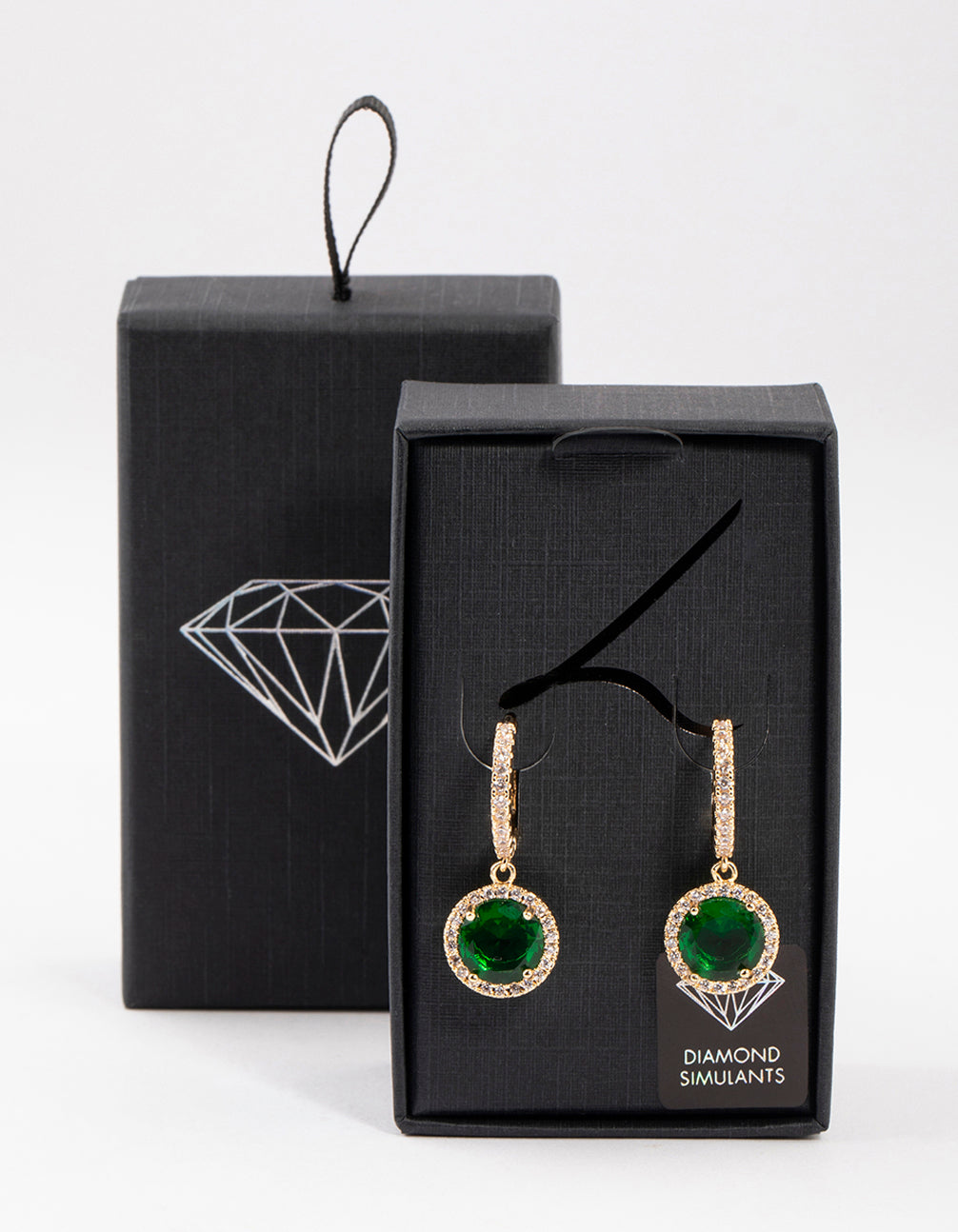 - These gorgeous huggie hoop earrings feature a gold-toned, diamante encrusted setting and a gorgeous emerald crystal in the centre.