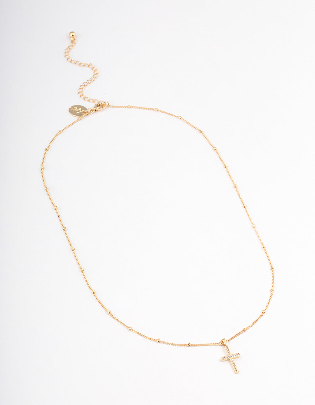Gold Plated Brass Cubic Zirconia Paved Cross Necklace