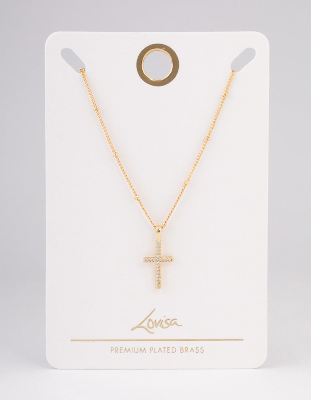 Add a touch of luxury to your wardrobe with the Lovisa Luxe Collection Gold Plated Brass Cubic Zirconia Paved Cross Necklace. The delicate design is embellished with sparkling cubic zirconia stones, making it the perfect accessory for any occasion.