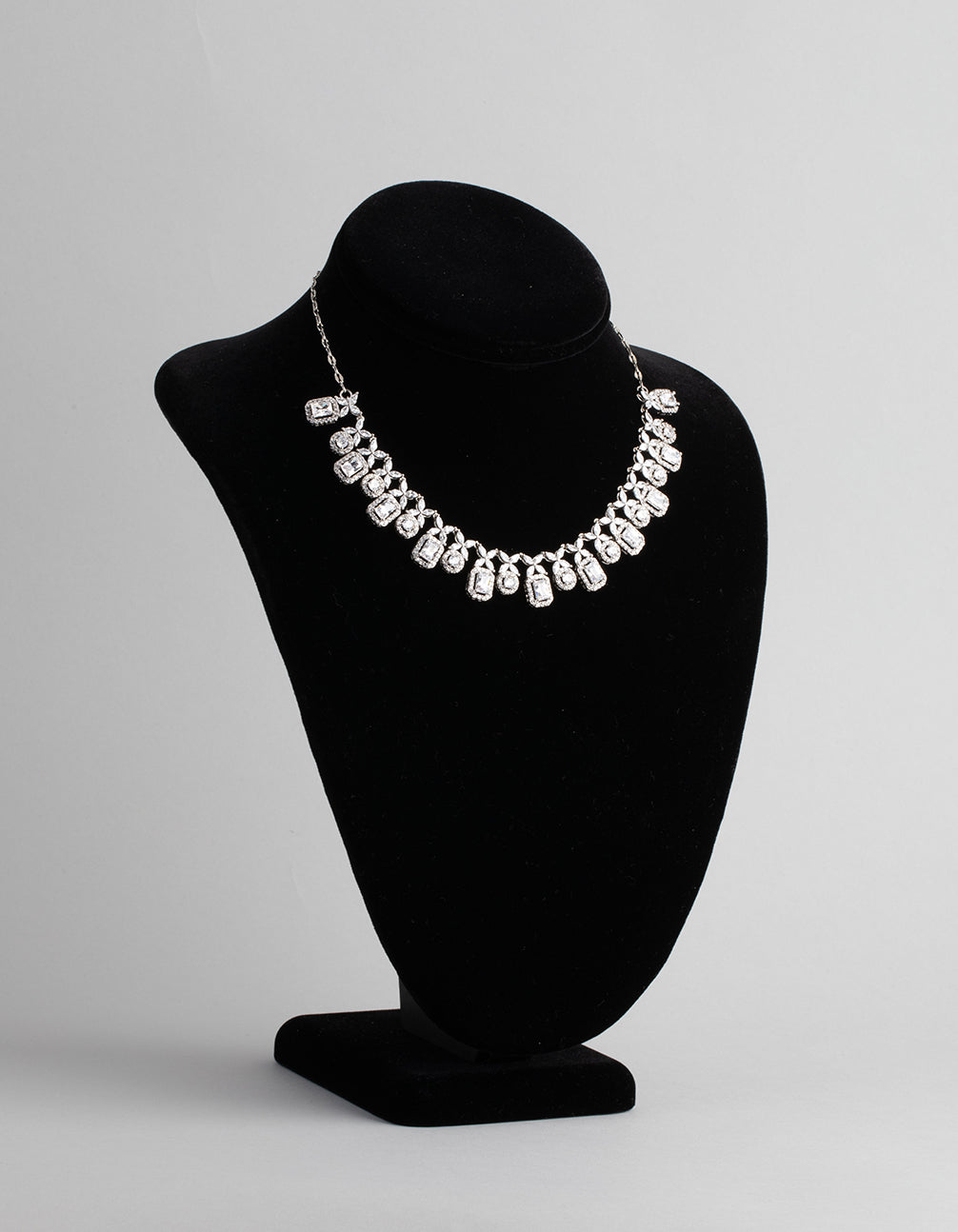 Silver Cubic Zirconia Dainty Deco Necklace