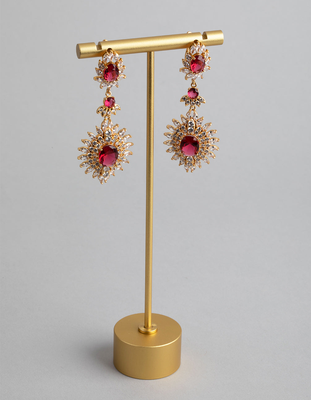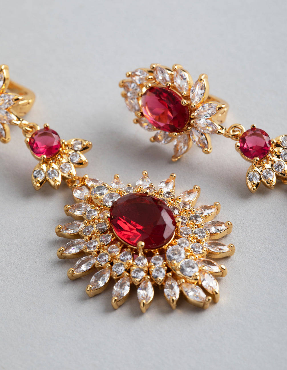 Gold Cubic Zirconia Lotus Drop Earrings
