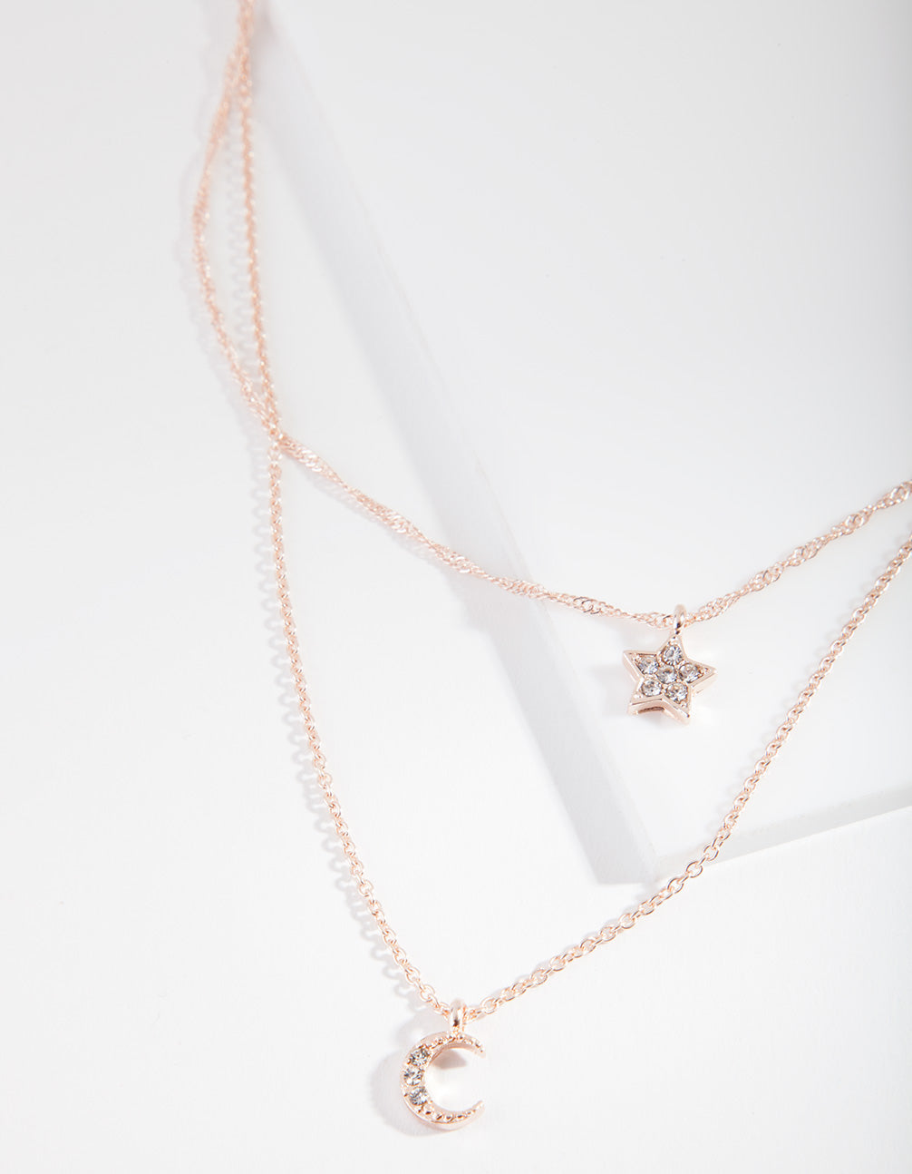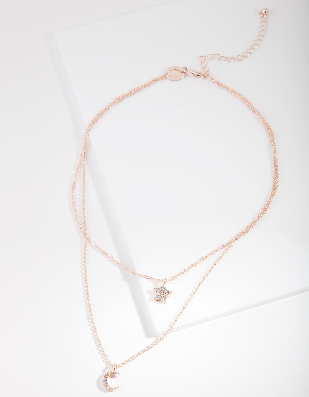 Find some magic in the everlasting celestial trend. Elevate your daily ensemble with this rose gold-toned star and moon necklace. Match with other rose gold-tones and semi-precious elements for a dreamy aesthetic.