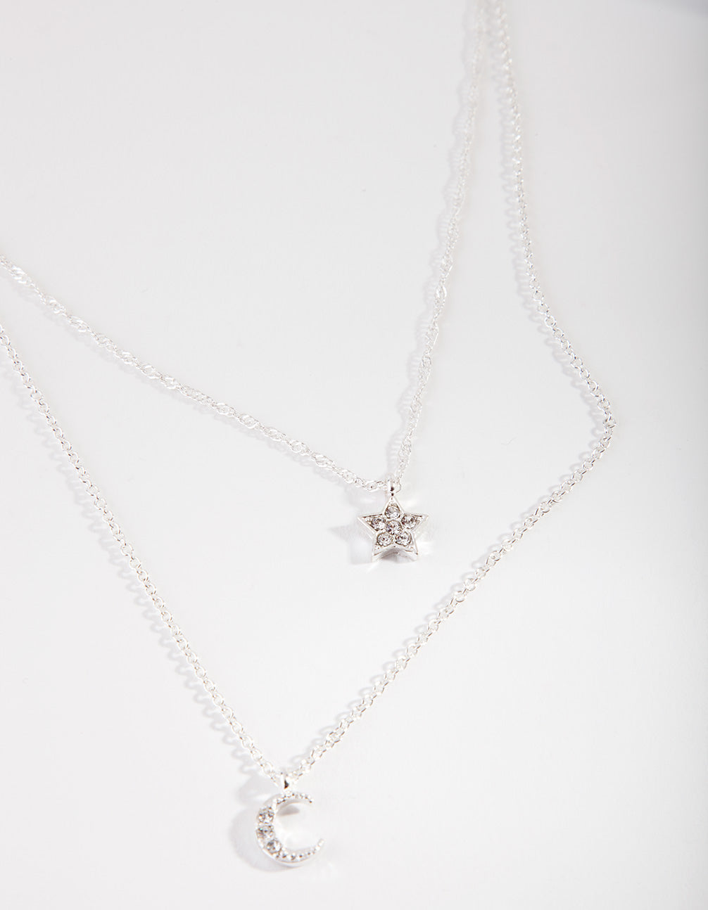Find some magic in the everlasting celestial trend. Elevate your daily ensemble with this silver-toned starry night charm necklace. Match with other silver-tones and semi-precious elements for a dreamy aesthetic.