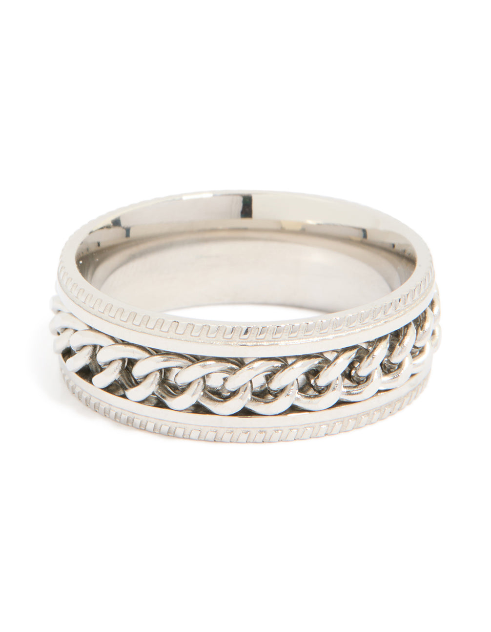 Mens Waterproof Stainless Steel Chain Detail Band Ring