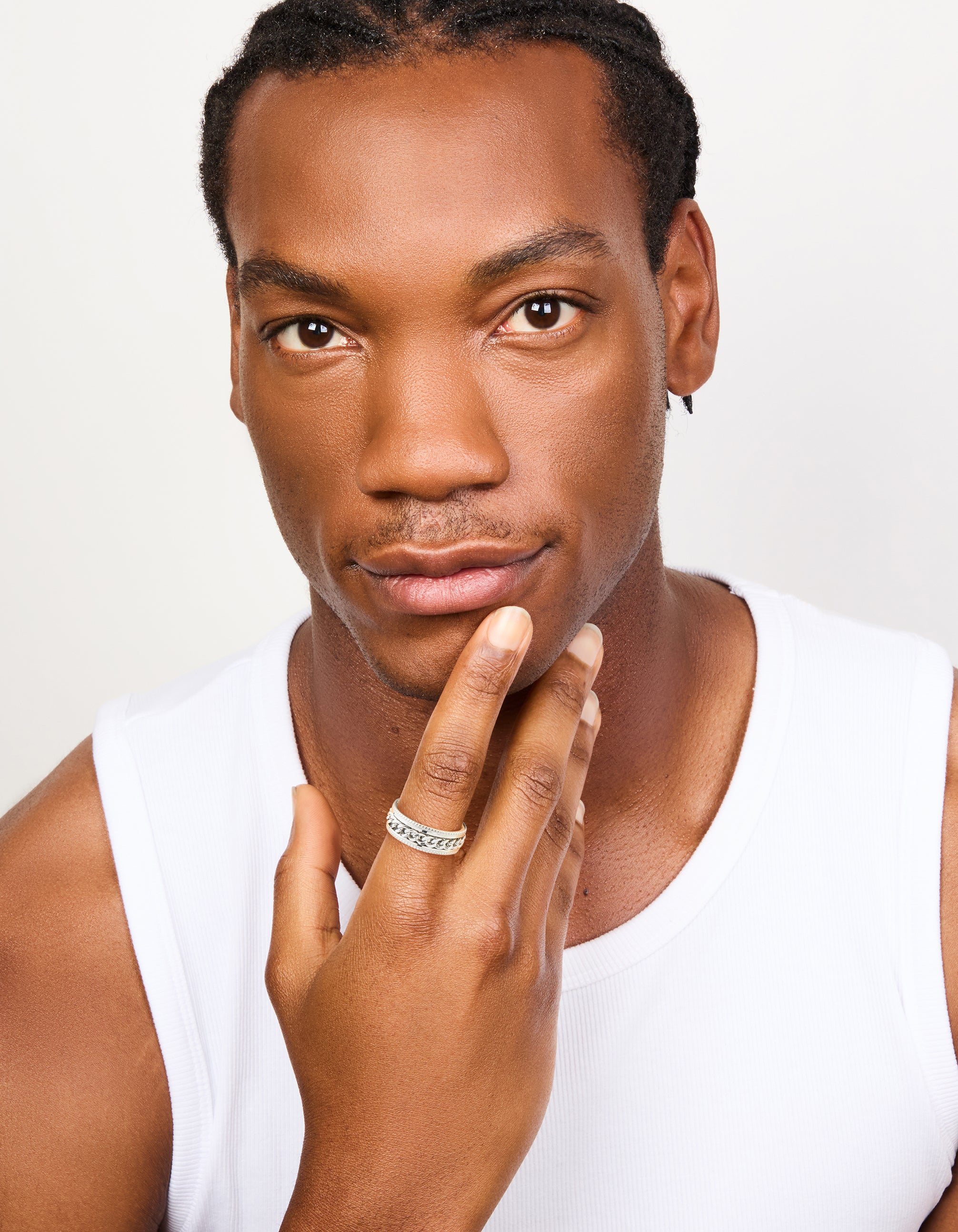 Add a bold touch to your look with this Waterproof Stainless Steel Chain Detail Band Ring. Designed for men, this stylish ring combines a sleek band with a striking chain detail for a modern, masculine edge. Crafted from durable stainless steel, it’s sweat, swim, and shower-proof, making it perfect for everyday wear. Whether you’re heading to the gym, hitting the beach, or dressing up for a night out, this versatile piece is built to keep up with your lifestyle. Pair it with casual outfits for a laid-back vibe or team it with a smart watch and bracelet for a polished finish. A must-have accessory for men who want style and durability in one!