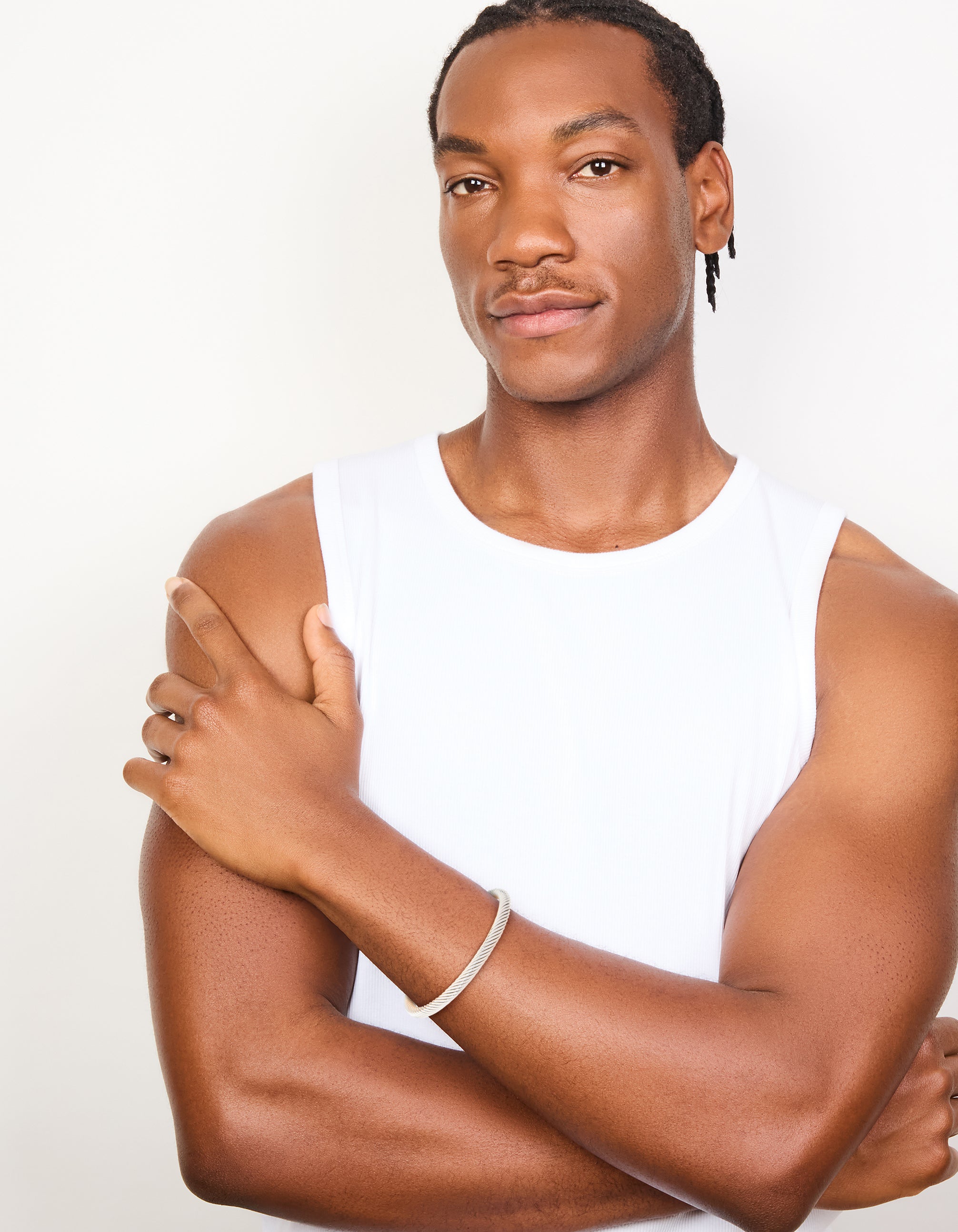 • Mens Waterproof Stainless Steel Large Twisted Wire Cuff - link has visual effect only