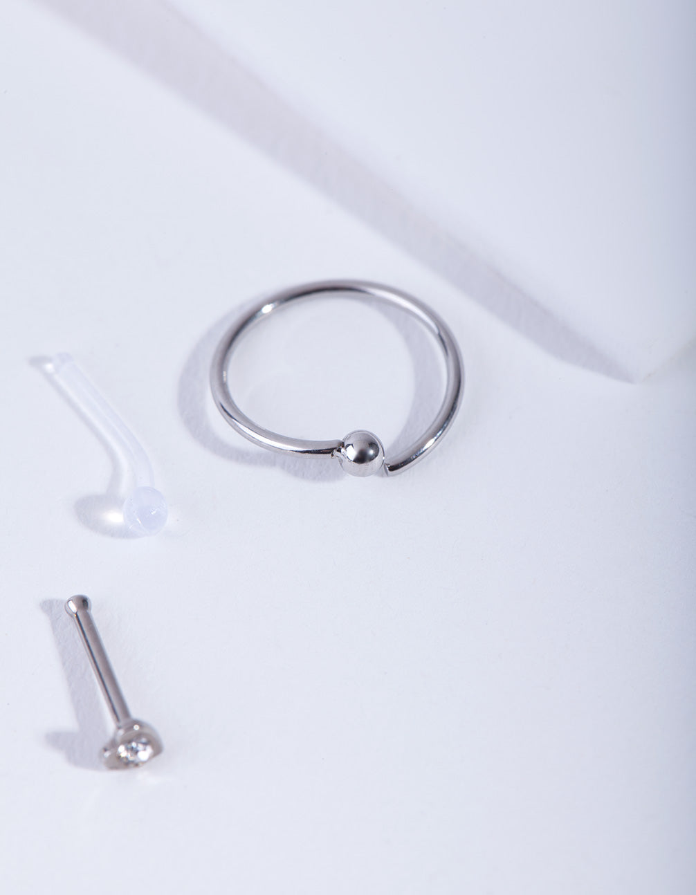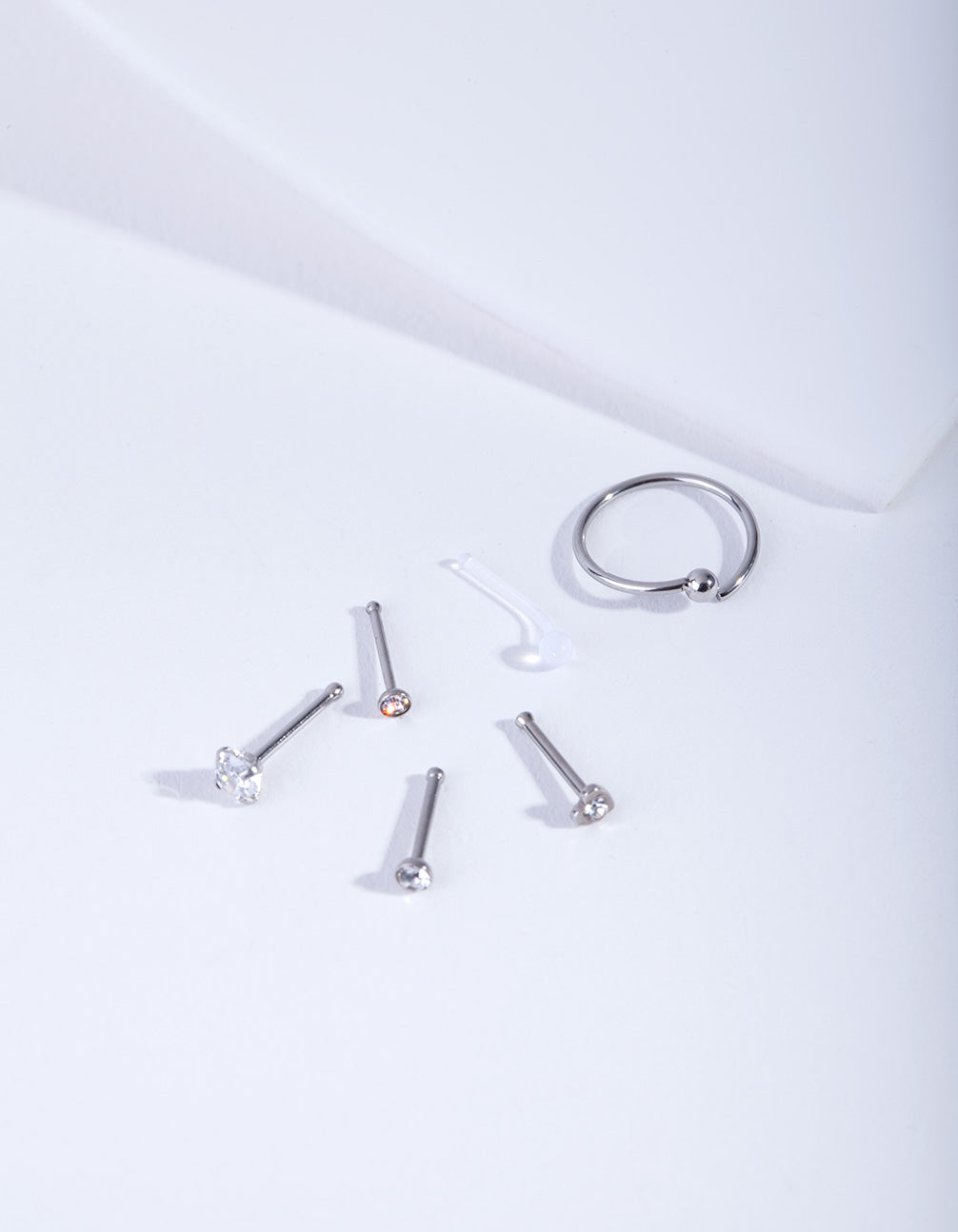 Silver Surgical Steel Mixed Nose Piercing 6-Pack