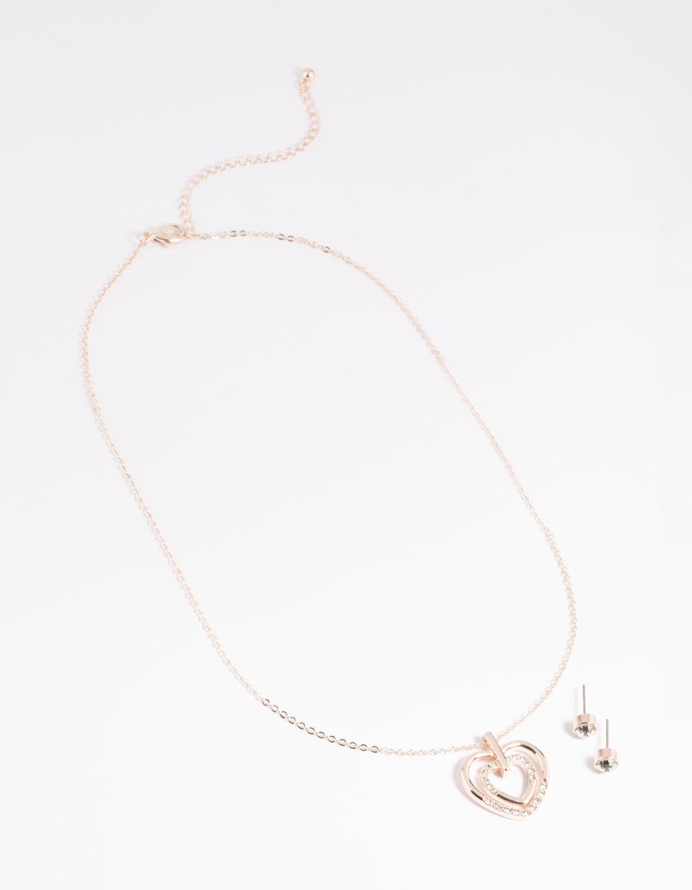 Rose Gold Heart Necklace & Earrings Set
