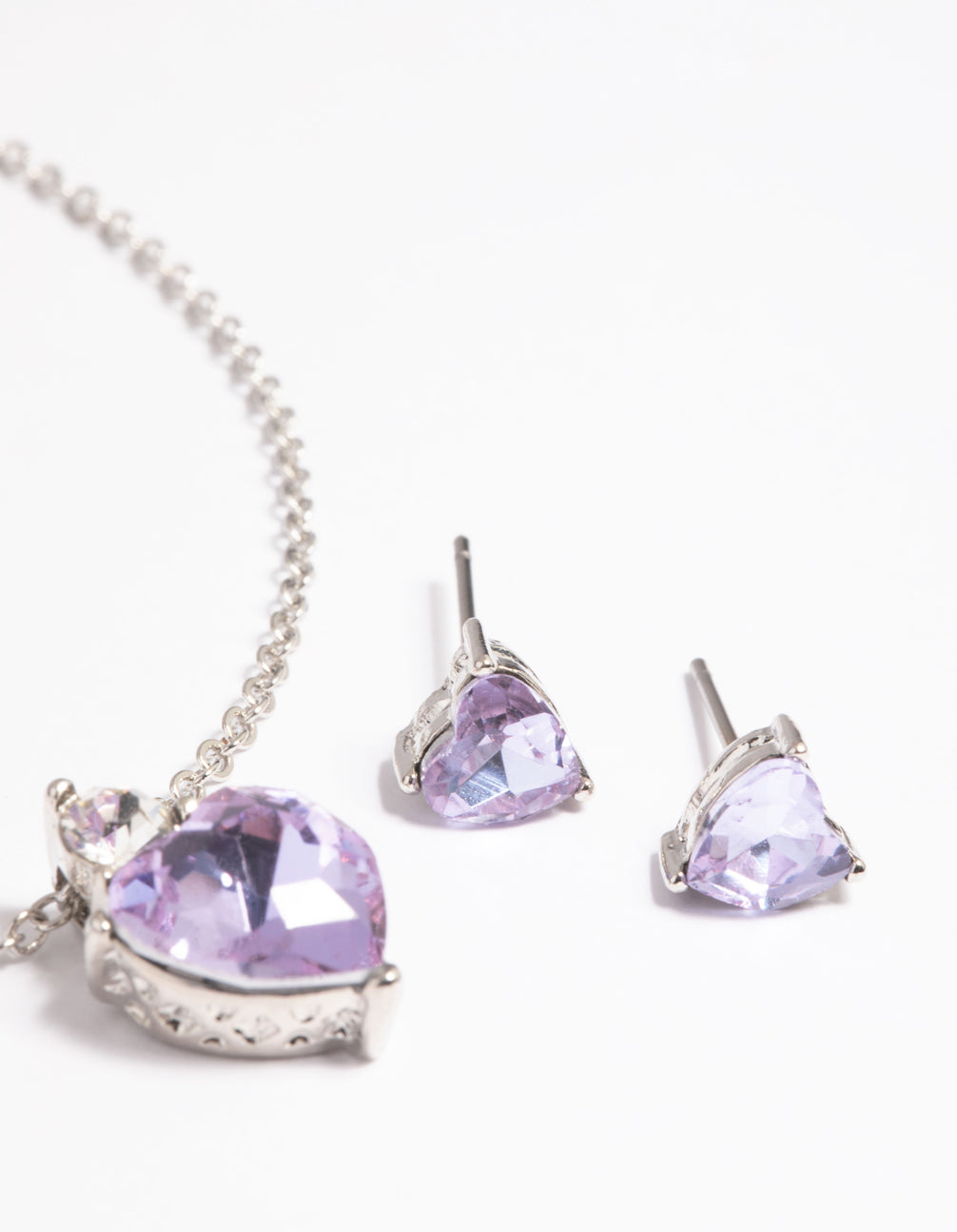 Lilac Heart Necklace & Earrings Set