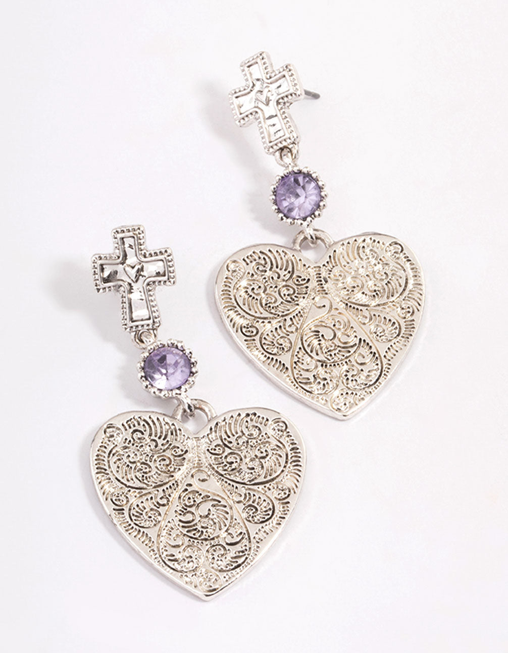 - Style these antique silver, textured heart and cross motif earrings with matching accessories from our Silver Essentials Collection.