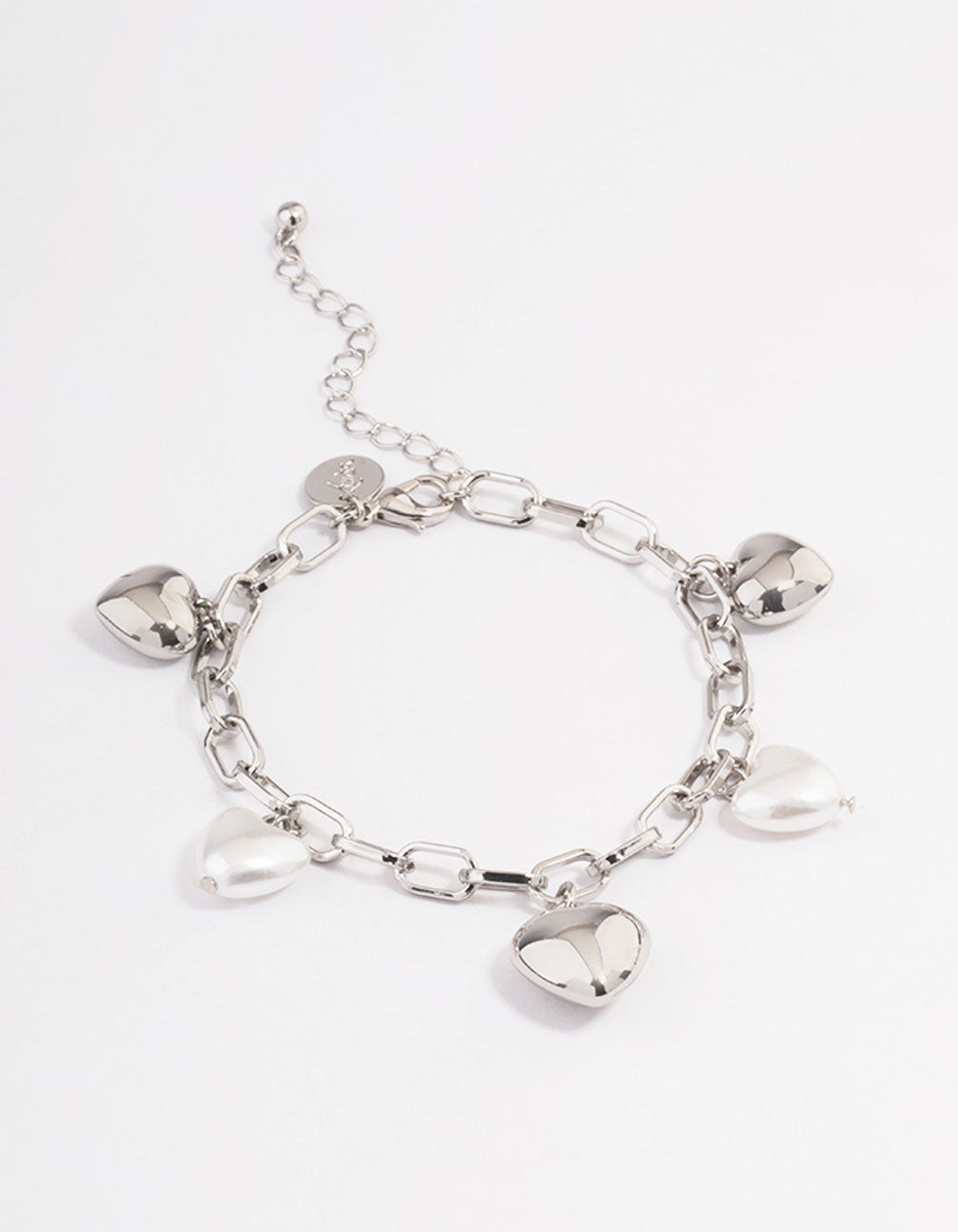 This silver bracelet features a trending, puffy heart charm for a fashionable look.