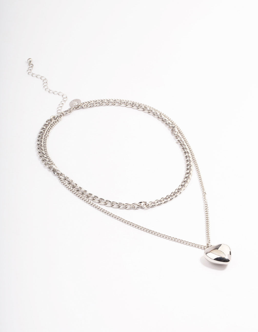 Style this silver-toned, puffy heart necklace with a matching pair of silver puffy heart drop earrings for a fashionable look.
