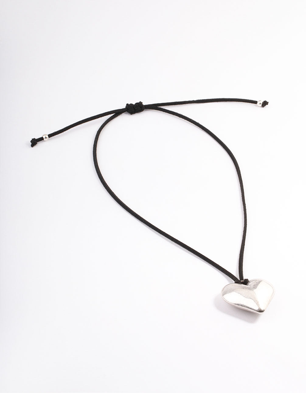 Silver Puffy Heart Black Suede Adjustable Cord Necklace Silver Puffy Heart Black Suede Adjustable Cord Necklace Silver Puffy Heart Black Suede Adjustable Cord Necklace